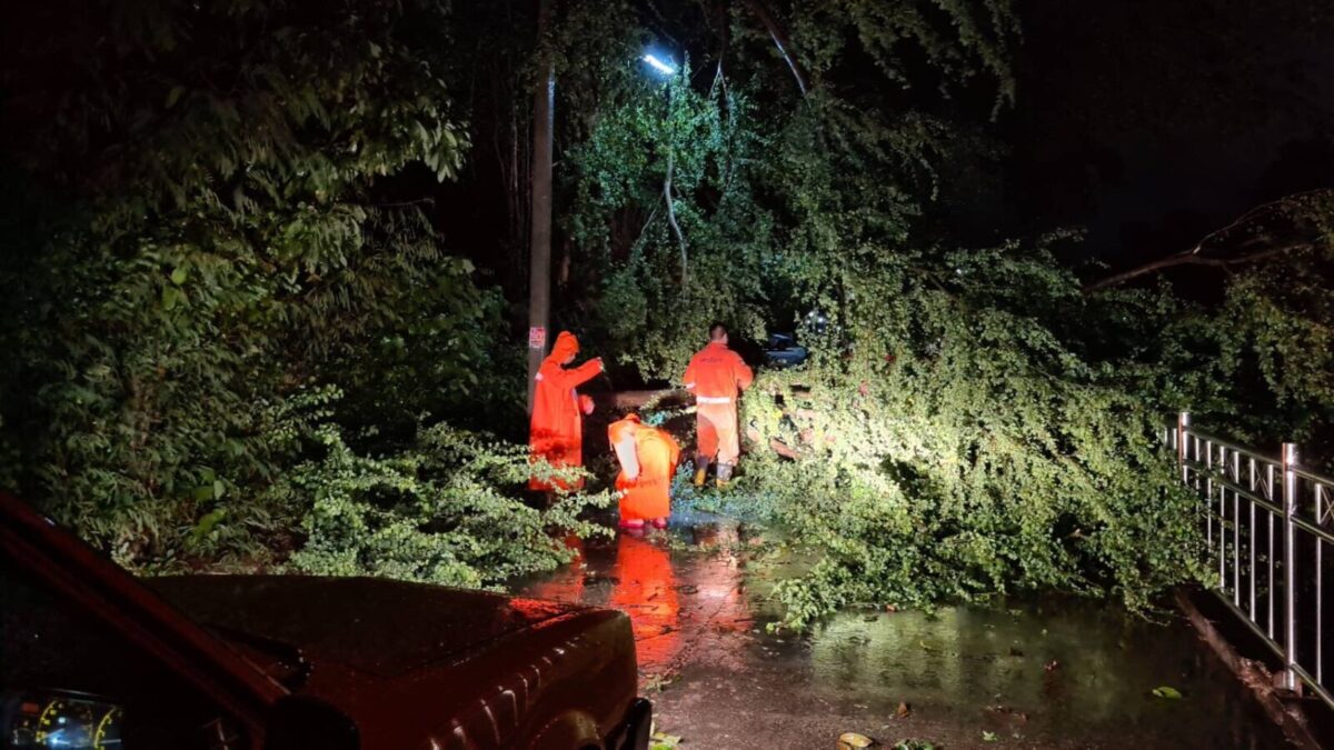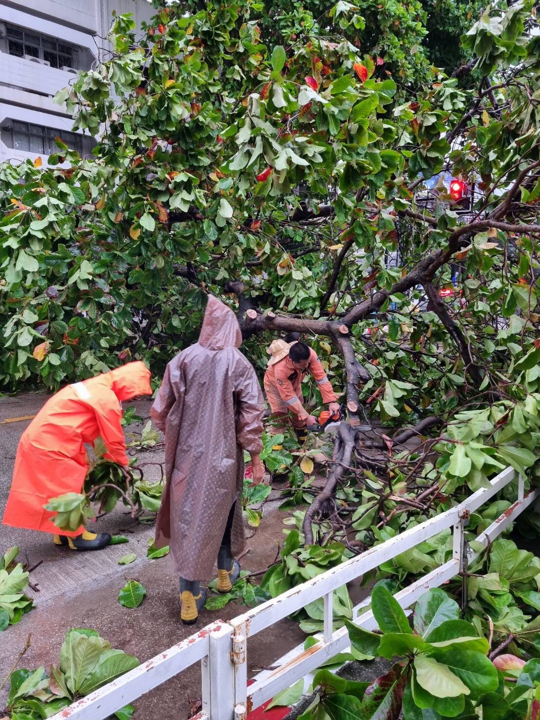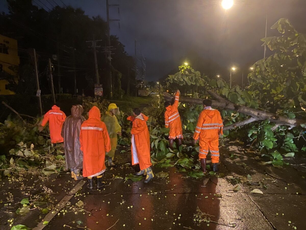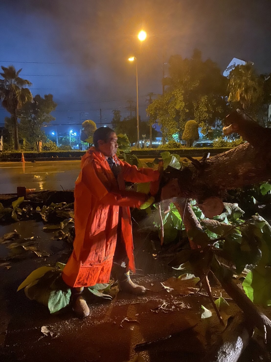 เจ้าหน้าที่งานป้องกันฯ เร่งเคลียร์พื้นที่ที่ได้รับความเสียหายจากพายุ “หมาอ๊อน” ตลอดทั้งคืน