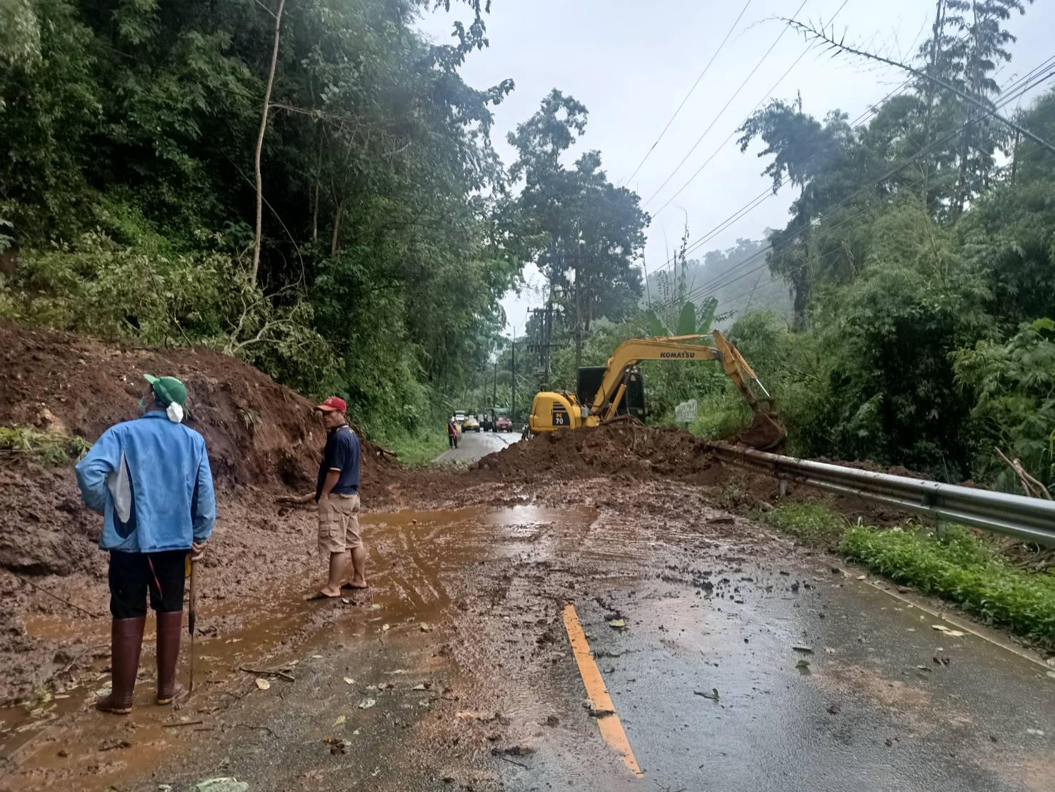 อย่างไรก็ตามล่าสุด ทางด้านเจ้าหน้าที่ของ อบต. โป่งแยง ได้ใช้รถแบคโฮ เข้าดำเนินการเคลียร์จุดที่เกิดดินสไลด์ปิดเส้นทาง เพื่อนำดินออกจากพื้นที่และเปิดเส้นทางการจราจรให้กลับมาใช้ได้ตามปกติ โดยทราบว่าขณะนี้เส้นทางดังกล่าวมีการเคลียร์สิ่งกีดขวางเรียบร้อยแล้ว พร้อมทั้งฝากแจ้งเตือนประชาที่ใช้เส้นทางดังกล่าว เนื่องจากยังทีฝนตกลงมาอย่างต่อเนื่อง อาจทำให้เกิดอุบัติเหตุขณะเดินทางได้ จึงขอให้ประชาชนและผู้ใช้เส้นทางขับขี่ยวดยานพาหนะด้วยความระมัดระวังเพื่อป้องกันอุบัติเหตุที่เกิดขึ้นขณะเดินทางด้วย