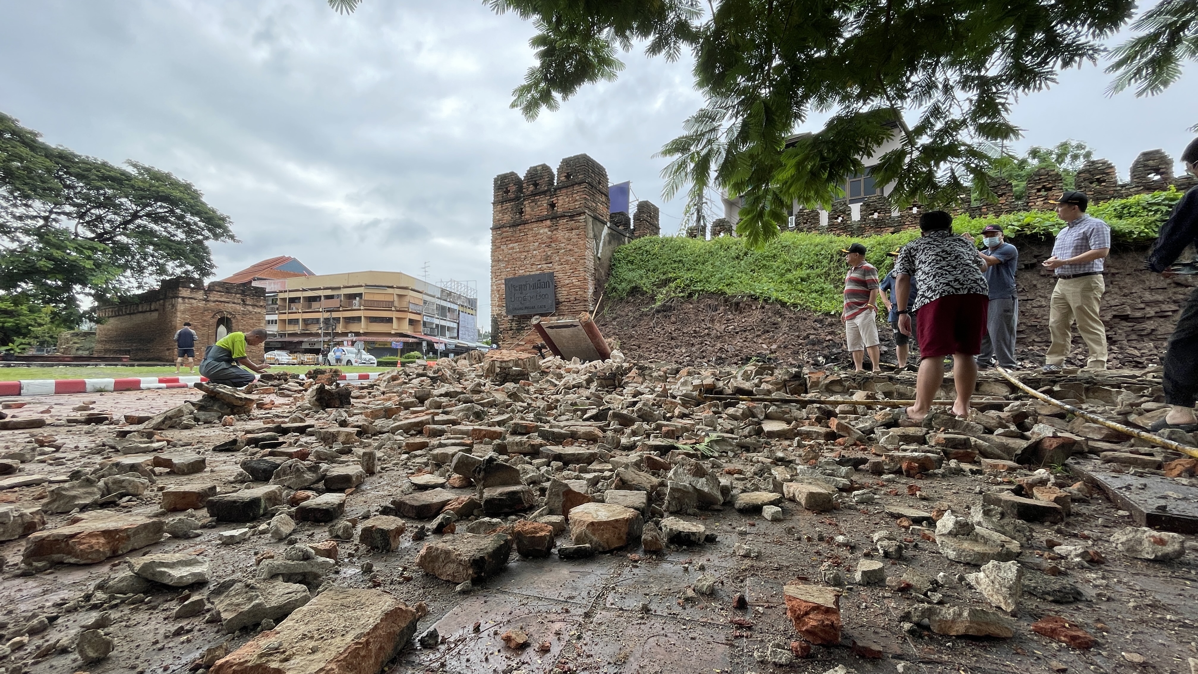 เจ้าหน้าที่เกี่ยวข้องเร่งสำรวจความเสียหาย ประตูช้างเผือกโบราณสถานสำคัญ หลังฝนตกหนักถล่มเสียหาย ล่าสุดทำการปิดกั้นพื้นที่ชั่วคราว เตรียมวางแผนบูรณะซ่อมแซมโดยเร็ว