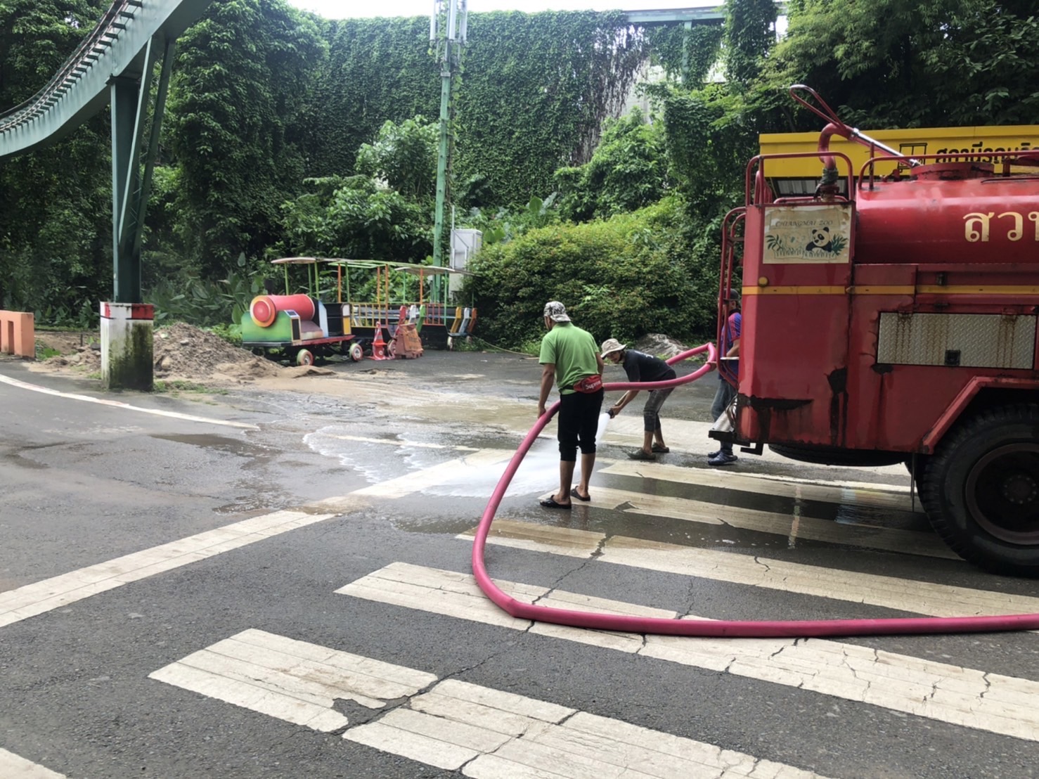 ตลอดจนถึงจัดเจ้าหน้าที่อำนวยความสะดวกในบริเวณจุดต่างๆ และกำจัดสิ่งปฏิกูลที่พัดมากับน้ำทำให้ท่อระบายน้ำ อุดตันฝายกั้นน้ำล้น อีกทั้งยังขอให้นักท่องเที่ยวและผู้เยี่ยมชมระมัดระวังในการเที่ยวชมเนื่องจากสถานการณ์ฝนตกอาจทำให้พื้นทางเดินลื่นเปียกแฉะและได้รับอันตราย อย่างไรก็ตามสวนสัตว์เชียงใหม่จะพัฒนาปรับปรุงอย่างต่อเนื่อง เพื่อการบริการที่ดีและเป็นประโยชน์ของนักท่องเที่ยวและผู้มาเยือน ต่อไป