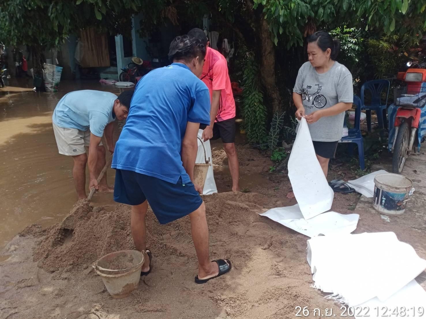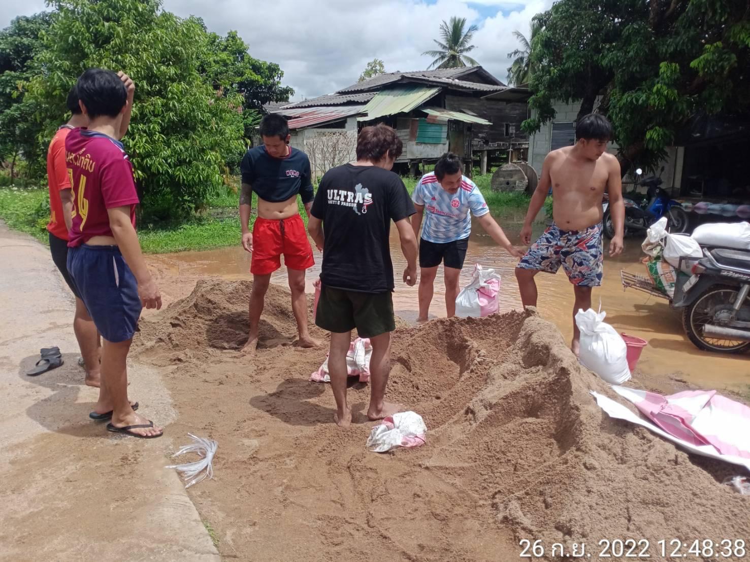 วันที่ 26 ก.ย. 65 เวลา 10.00 น. นายมงคล หมื่นอภัย นายก อบต.น้ำดิบ อ.ป่าซาง จ.ลำพูน มอบหมายให้ น.ส.วิราภรณ์ ทันสม รองนายก อบต.น้ำดิบ พร้อมด้วย หัวหน้าสำนักปลัด นักวิชาการเกษตรชำนาญการ และเจ้าหน้าที่งานป้องกันและบรรเทาสาธารณภัย อบต. ลงพื้นที่ตรวจประเมินสถานการณ์น้ำในเขตพื้นที่ พร้อมทั้งสำรวจความเสียหายบ้านเรือนของประชาชน ที่ได้รับความเดือดร้อนจากปริมาณน้ำที่เพิ่มขึ้น เร่งดำเนินการจัดหาทราย และกระสอบทราย เพื่อทำแนวกั้นน้ำและเบี่ยงทางน้ำไม่ให้เข้าท่วมขังในเขตชุมชน และเตรียมความพร้อมรับมือฝนตกหนักจากพายุไต้ฝุ่นโนรู