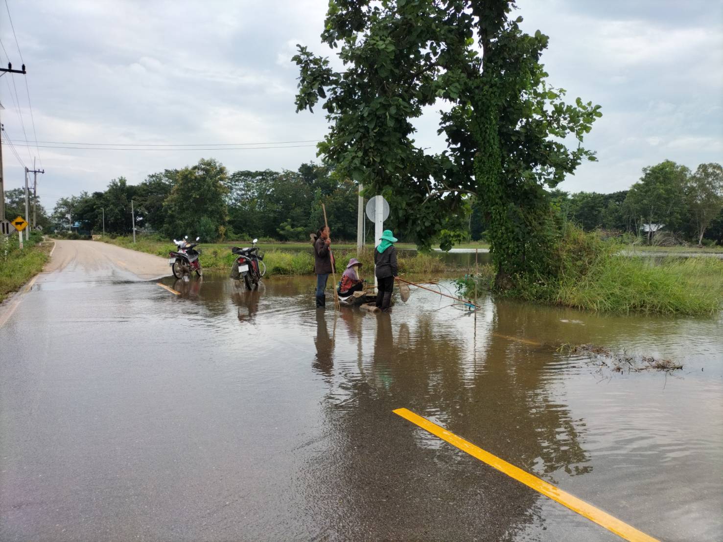 นายนฤเดช ศิริแสน นายก อบต.หนองแรด พาผู้สื่อข่าวไปดูจุดที่มีน้ำท่วมไหลข้ามถนนที่บ้านหนองแรดใต้ ม.3 ซึ่งมีน้ำท่วมซัดถนนขาด จนต้องปิดเส้นทางสัญจร ระหว่างบ้านหนองแรดใต้ ม.3 ต.หนองแรด ซึ่งสามารถเชื่อมต่อไปยังบ้านใหม่ริมอิง ม.18 ต.เวียง ไม่ให้รถสัญจรผ่าน เพราะหวั่นเกิดอันตราย เพราะในช่วง 1 เดือนกว่าที่ผ่านมา มีรถเข็นและรถจักรยานยนต์ที่ขับผ่านทางน้ำไหลผ่านถนน และสู้แรงน้ำไม่ไหว ถูกน้ำซัดไหลตกไปในทุ่งนา ตอนนี้ยังไม่สามารถเก็บกู้ได้ แต่โชคดีคนขับขี่ปลอดภัย