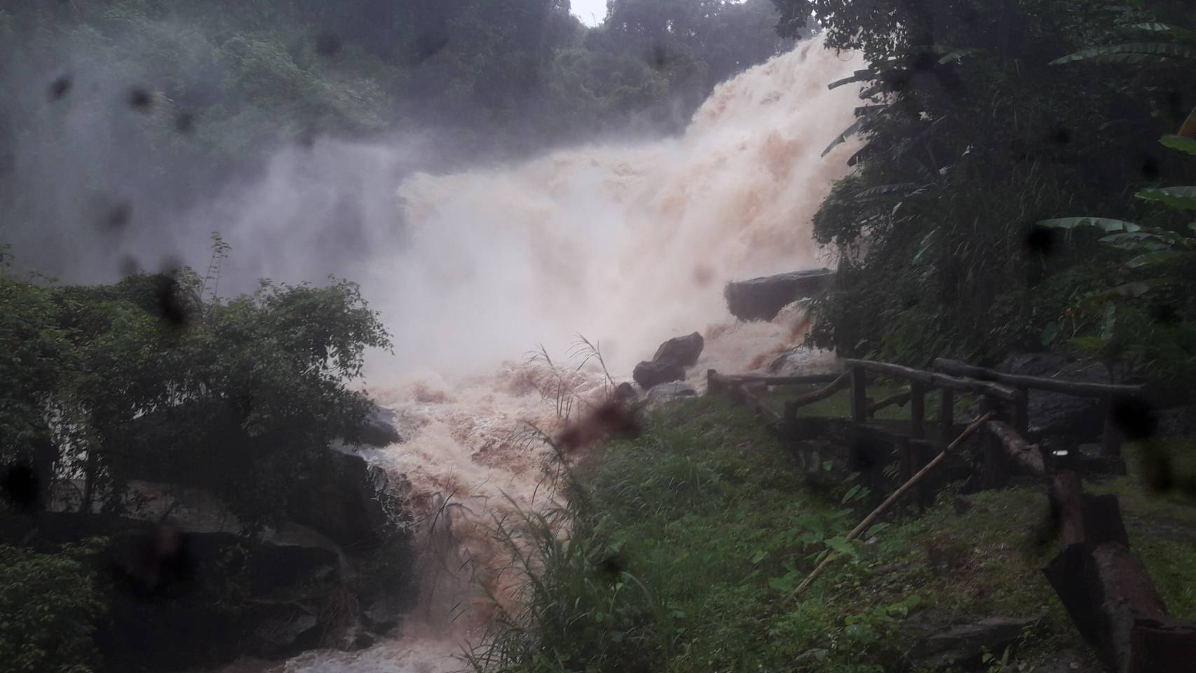 โนรูมาแล้ว พ่นพิษทำน้ำตกแม่กลางไหลหลากน่ากลัวอุทยานดอยอินทนนท์สั่งปิดห้ามนักท่องเที่ยวเข้าใกล้หวั่นอันตรายน้ำป่ากำลังมาหนัก