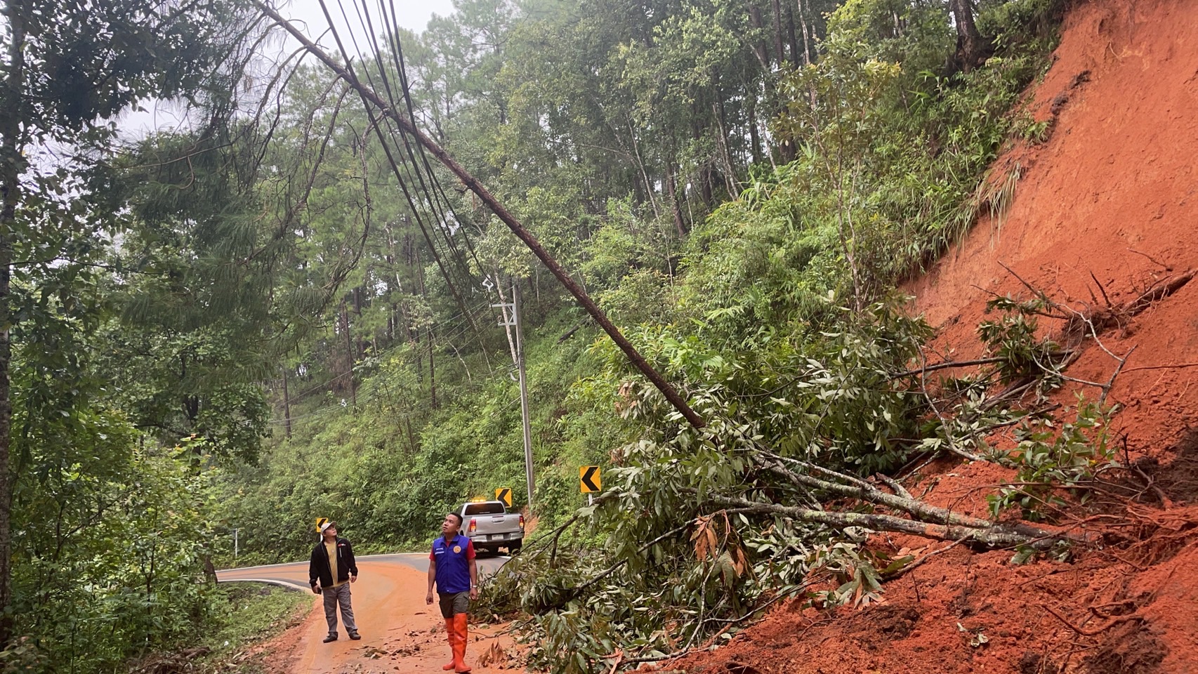 นำเครื่องจักร แก้ปัญหาดินสไลด์ทับถนนเส้นทาง สะเมิง-กัลยาณิวัฒนา