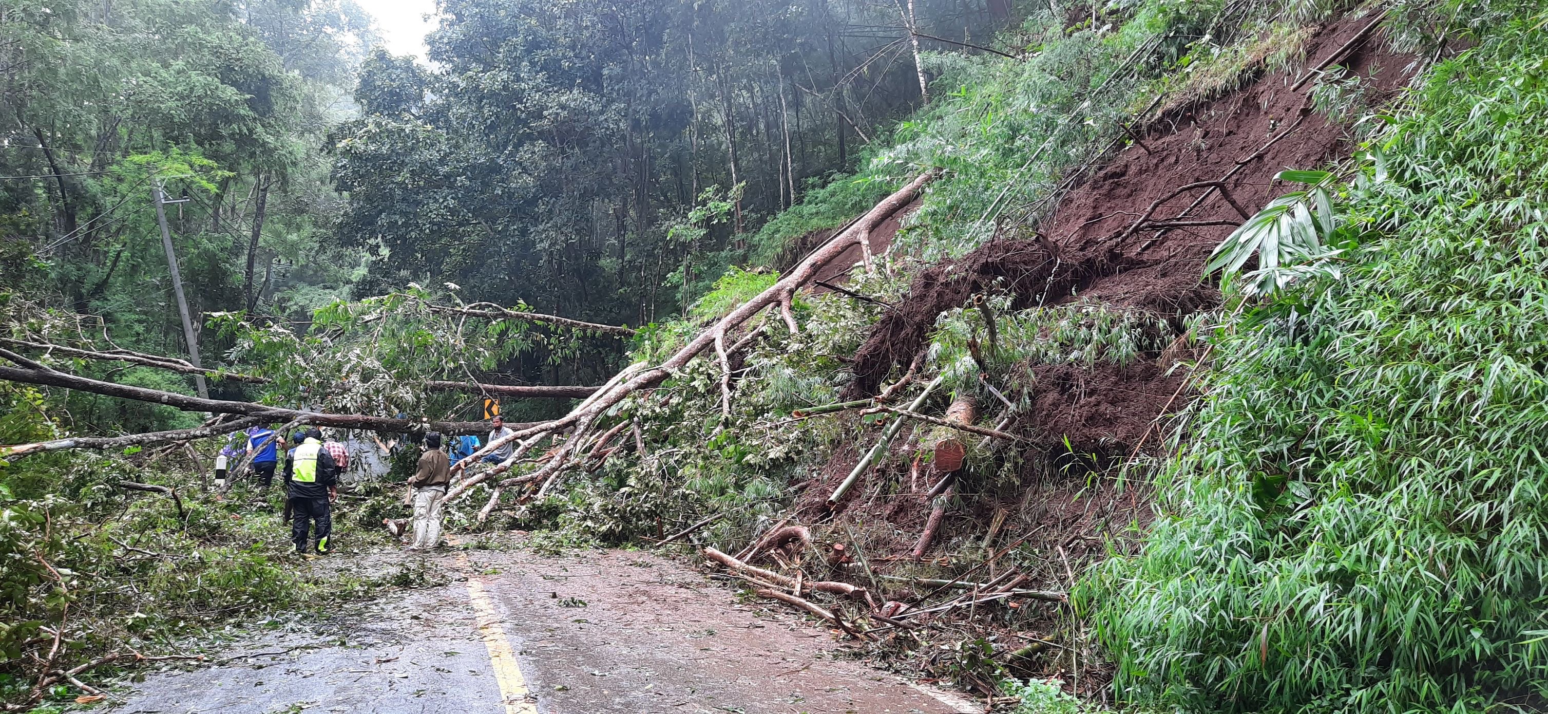 – ต.บ่อแก้ว เกิดดินสไลด์ ต้นไม้ล้มทับเสาไฟฟ้าหัก ปิดเส้นทางเข้าบ้านแม่ขะปู ม.2, 3 และ ม.4 ต.บ่อแก้ว