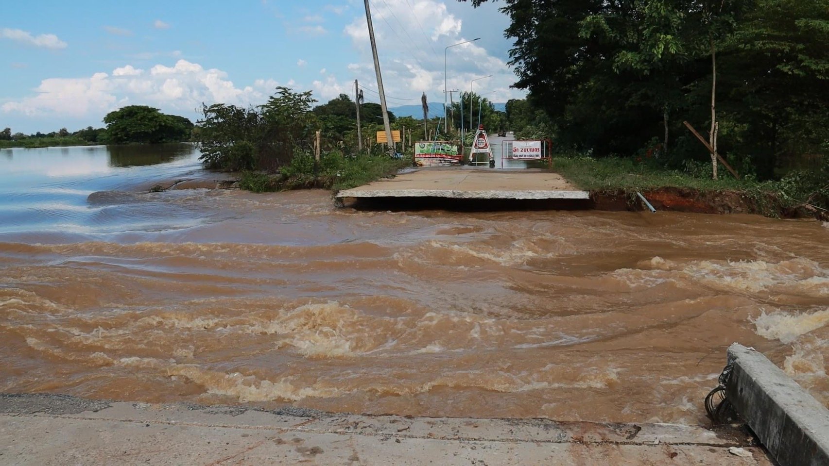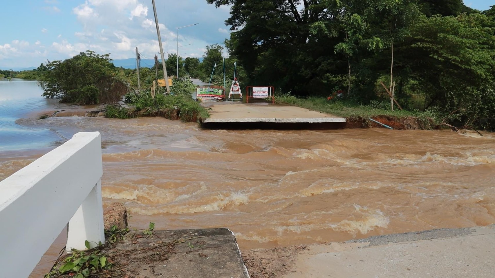 ล่าสุดเมื่อเช้าของวันนี้ (5 ต.ค. 65) เสาไฟฟ้าที่นำมาวางเป็นสะพานชั่วคราวดังกล่าว ได้ถูกน้ำพัดพังลง เนื่องจากน้ำได้กัดเซาะบริเวณคอสะพานทั้ง 2 ฝั่งเป็นวงกว้างขึ้น ทำให้ความยาวของเสาไฟฟ้าที่มีความยาว 12 เมตร ไม่สามารถพาดระหว่าง 2 ฝั่งของสะพานที่ขาดได้ จึงได้ร่วงลงแม่น้ำ ทำให้สะพานจุดดังกล่าว ไม่สามารถใช้สัญจรข้ามไปมาได้ ทั้งนี้ ภายหลังที่น้ำลดลง หน่วยงานที่เกี่ยวข้องจะได้เร่งเข้าดำเนินการซ่อมแซมสะพานดังกล่าวในทันที