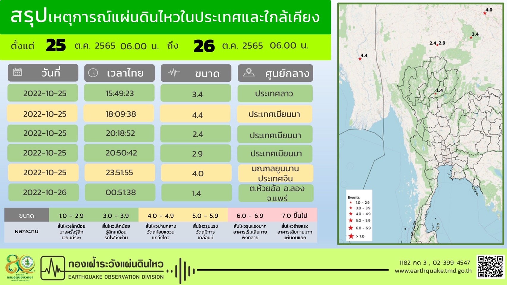 สถานการณ์แผ่นดินไหว ในช่วงวันที่ 25-26 ตุลาคม 2565