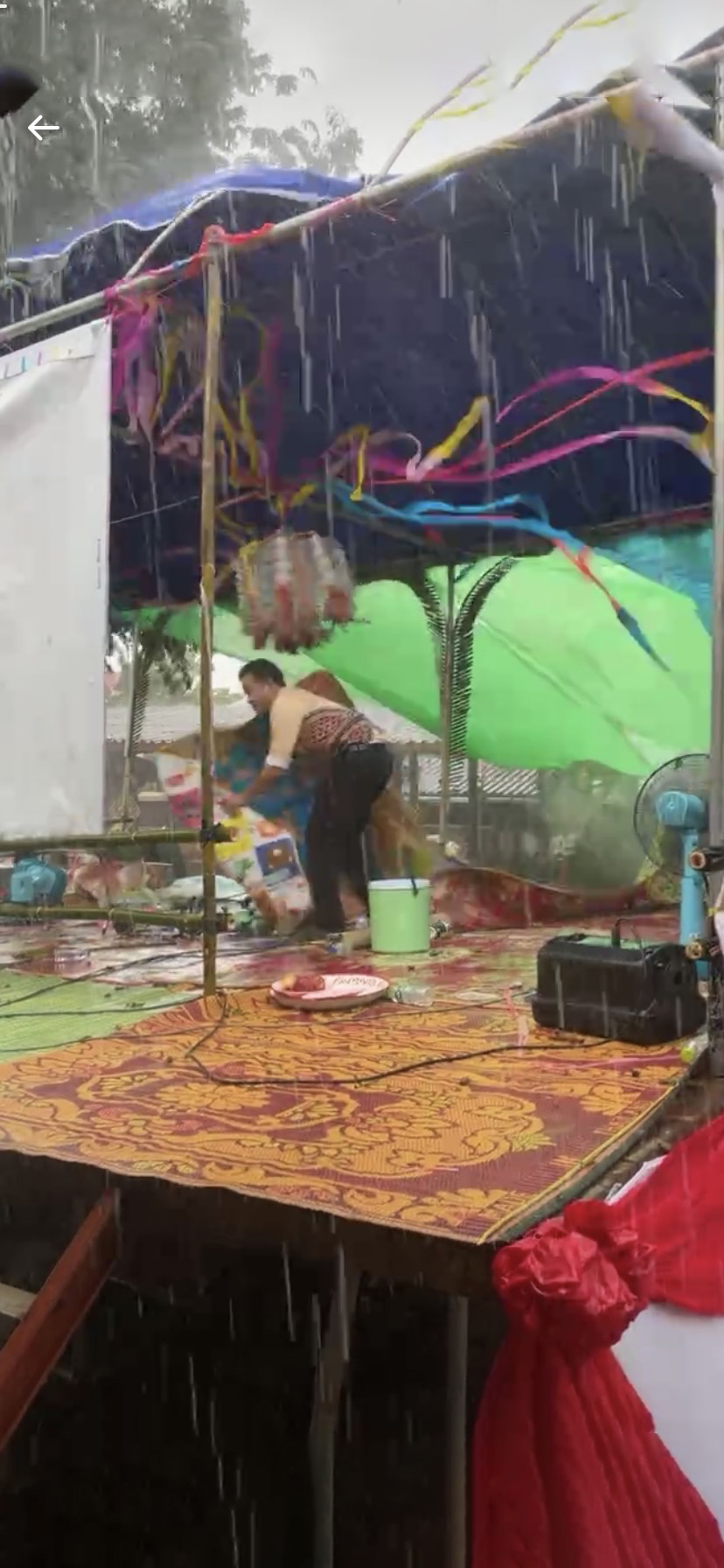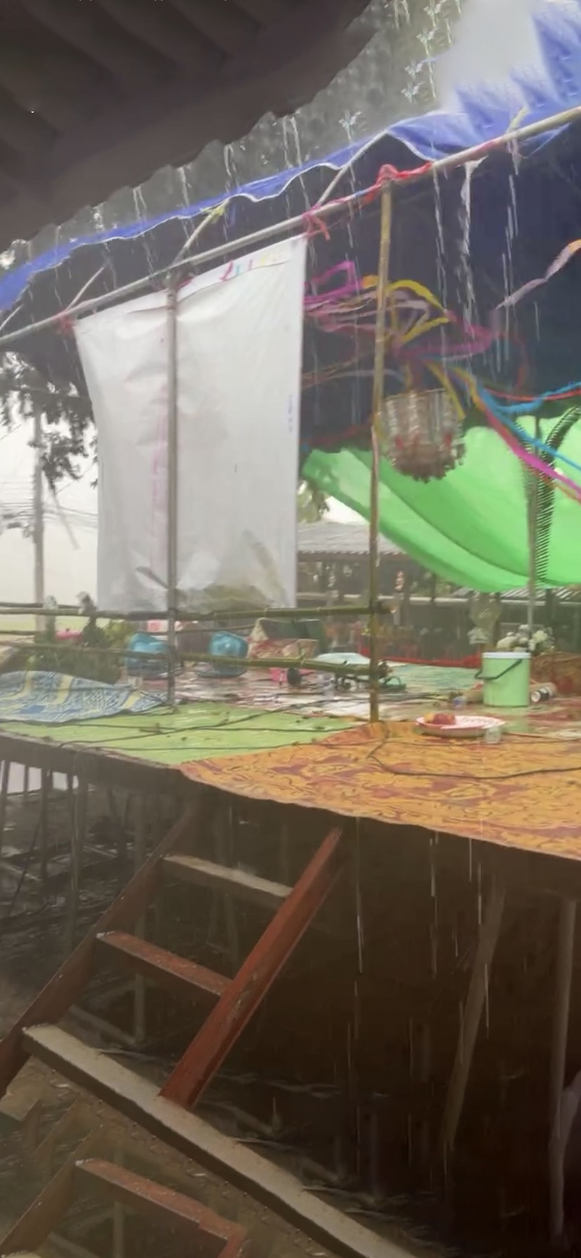 เมื่อเวลาประมาณบ่าย3 โมงเศษวันที่ 1 ธ.ค.2565 ขณะที่ซอพื้นเมืองคณะจันทร์ติ๊บจอมทอง-พรรณีแม่แตง เตรียมการแสดงบนผามจ่างซอ(ช่างซอ) ในงานทำบุญป่าช้า วัดนางแล ต.ช่างเคิ่ง อ.แม่แจ่ม จ.เชียงใหม่ ปรากฎว่าเกิดฝนเทกระหน่ำลงมาอย่างหนัก พร้อมลมพัดมาอย่างแรง ไฟฟ้าเกิดดับทันที ส่งผลให้ผามจ่างซอระเนระนาด ทั้งจ่างซอ คนเป่าปี่ เผ่นหนีลงมากันกระเจิง ต้องหยุดการแสดงทันที