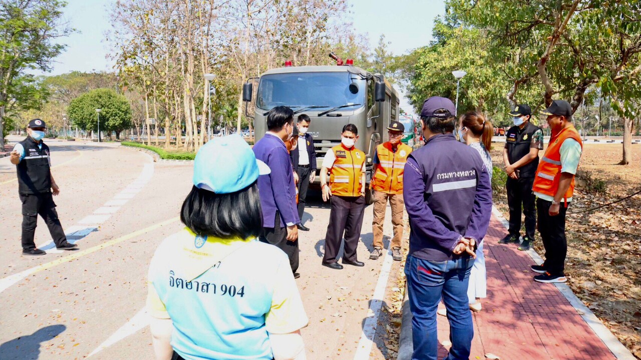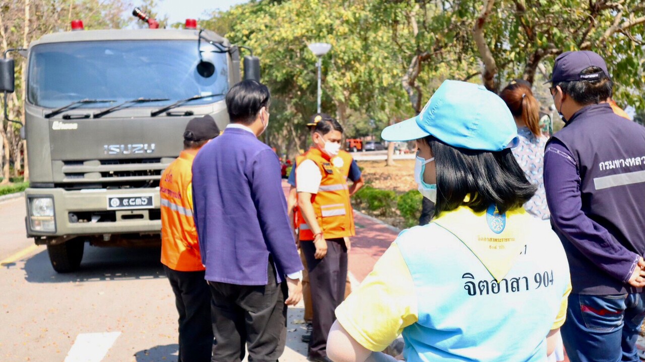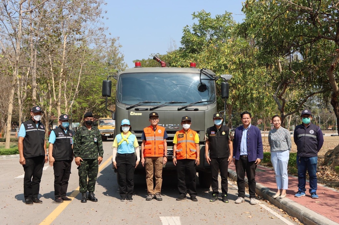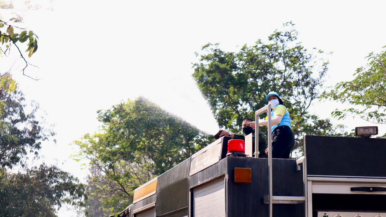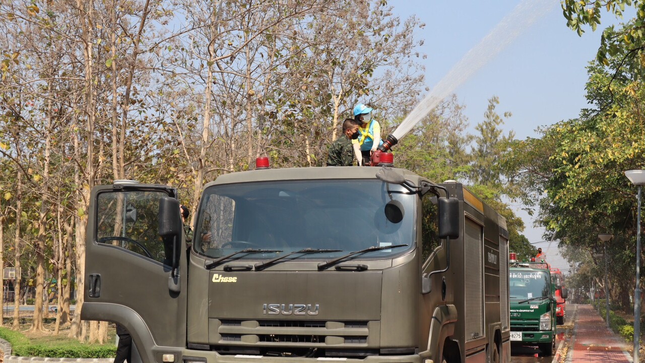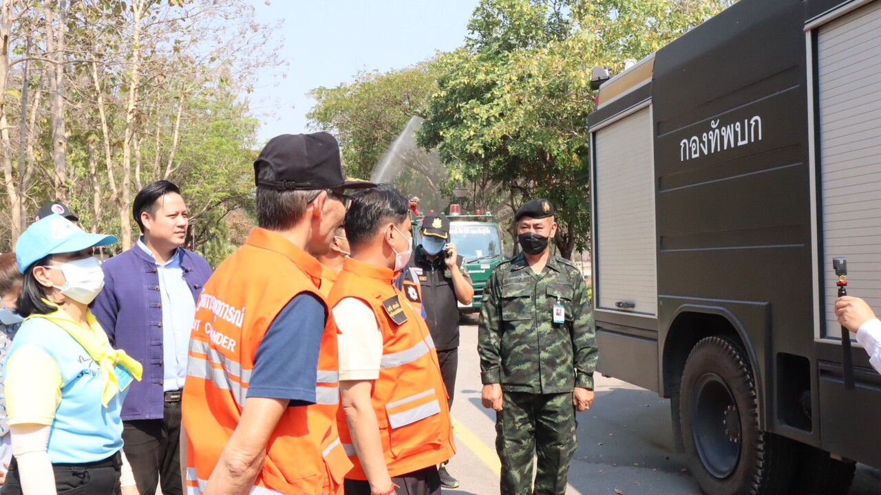 ฉีดพ่นละอองน้ำ ลดร้อน ลดฝุ่น PM 2.5 บริเวณสวนสาธารณะ เพิ่มพื้นที่ Green Zone และ Safe Zone ให้คนลำปาง