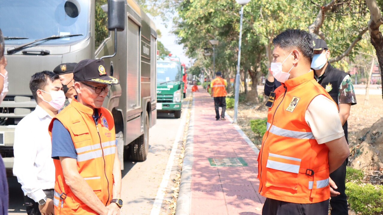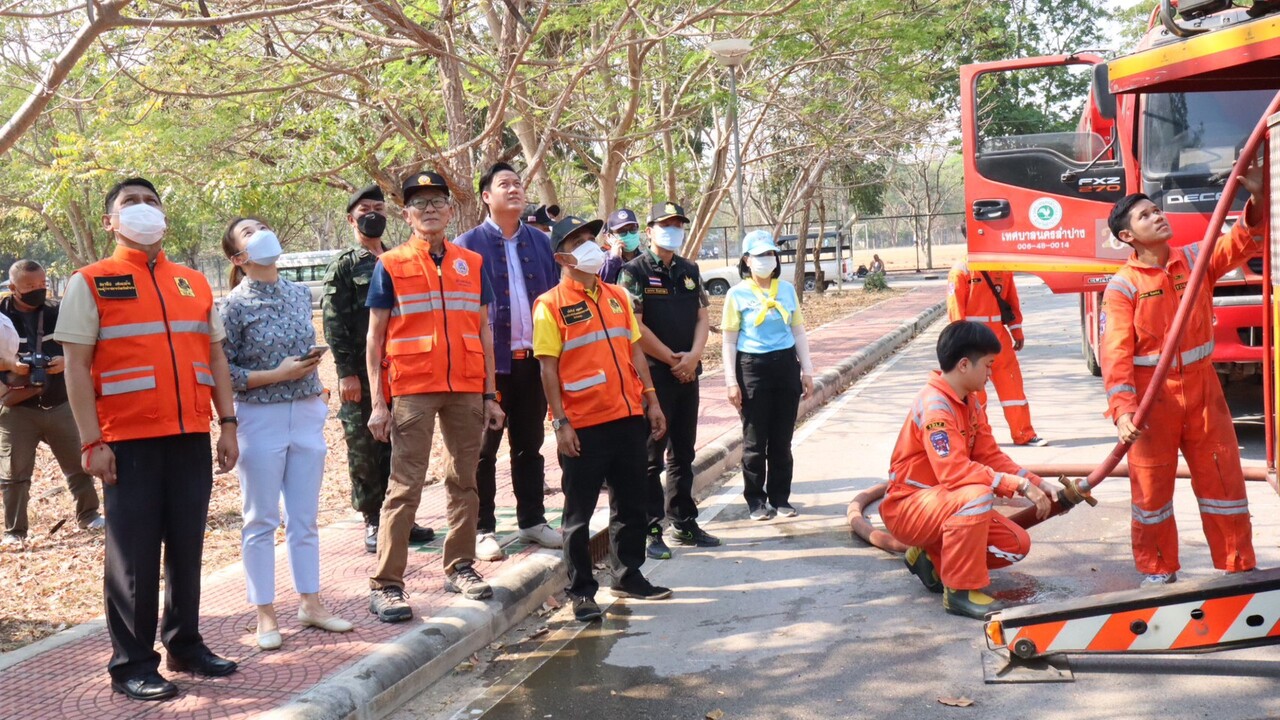 โดยมี นายชนาธิป เสมแย้ม รองผู้ว่าราชการจังหวัดลำปาง ร่วมตรวจเยี่ยมให้กำลังใจการปฏิบัติงานของเจ้าหน้าที่ พร้อมนี้มี หน่วยงานที่เกี่ยวข้อง อาทิ เช่นงานป้องกันและบรรเทาสาธารณภัย เทศบาลนครลำปาง สำนักงานป้องกันและบรรเทาสาธารณภัยจังหวัดลำปาง เทศบาลนครลำปาง เทศบาลเมืองเขลางค์นคร สํานักบริหารพื้นที่อนุรักษ์ที่ 13 สาขาลำปาง ร่วมนำรถบรรทุกน้ำฉีดพ่นละออง