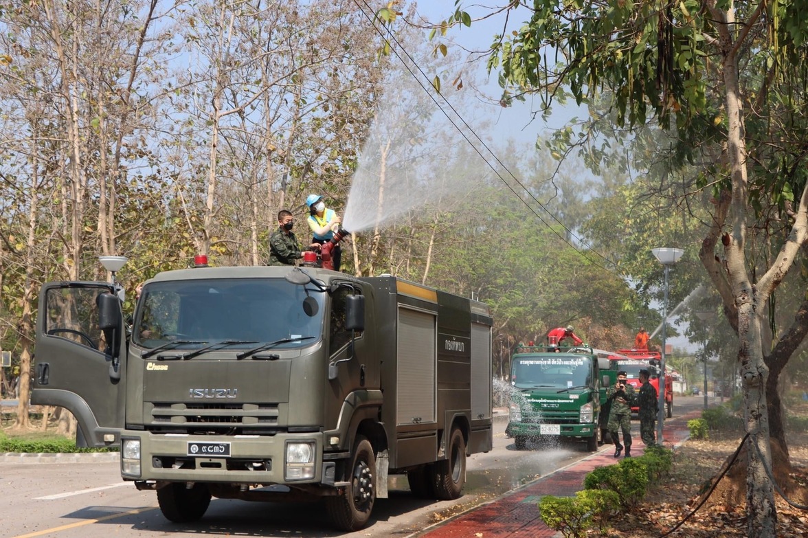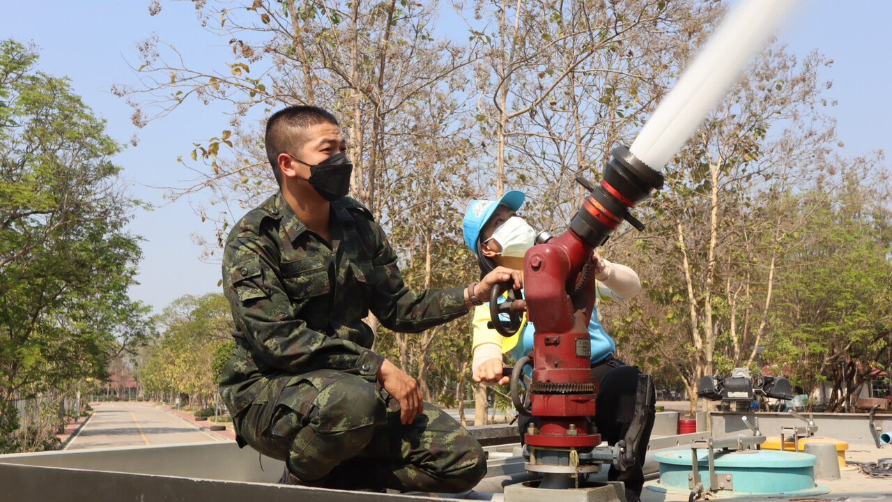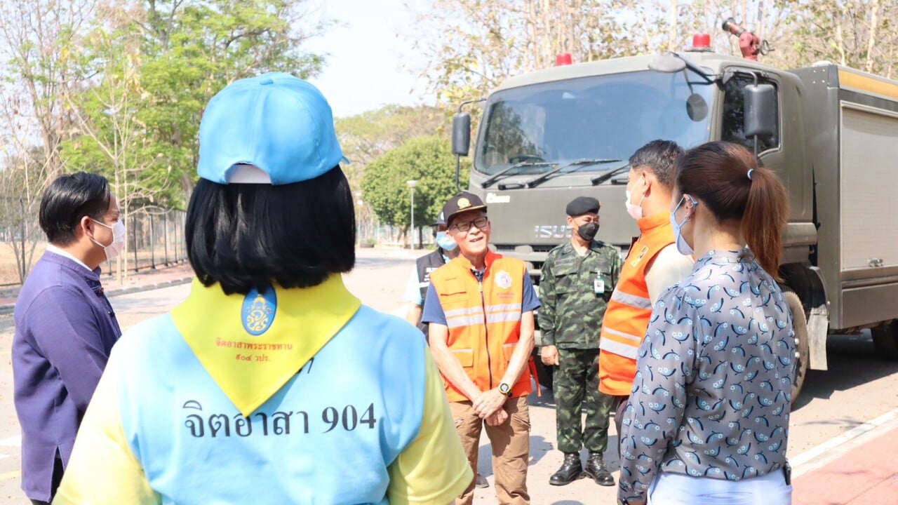 พลตรี พรชัย นพรัตน์ ผู้บัญชาการมณฑลทหารบกที่ 32 ร่วมกับ ผู้แทนกองอำนวยการรักษาความมั่นคงภายในจังหวัดลำปาง และจิตอาสา 904 หลักสูตรพื้นฐานภาค 3 รุ่นที่ 1/65 และกำลังพลจิตอาสา ร่วมปฏิบัติภารกิจฉีดพ่นละอองน้ำโดยสนับสนุนรถบรรทุกน้ำขนาด 12,000 ลิตร ฉีดพ่นละอองน้ำเพื่อสร้างความชุ่มชื้น เพิ่มพื้นที่สีเขียวบริเวณสวนสาธารณะเวียงละกอน (สนามกีฬาเทศบาล 7) เมื่อวันที่ 10 กุมภาพันธ์ 2566 เวลา 14.00 น.