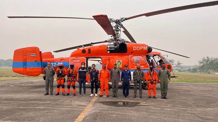 วันที่ 31 มี.ค.66 ปริมาณฝุ่นละอองในอากาศ หรือ PM2.5 ในจังหวัดเชียงรายยังคงหนาแน่น หลายพื้นที่ยังคงมีไฟไหม้ตามป่าเขาหลายพื้นที่ ทางป้องกันและบรรเทาสาธารภัยจังหวัดเชียงราย ได้ขอสนับสนุน เฮลิคอปเตอร์ ปั้กเป้า หรือ KA -32 มาสนับสนุนภารกิจดับไฟป่าในพื้นที่