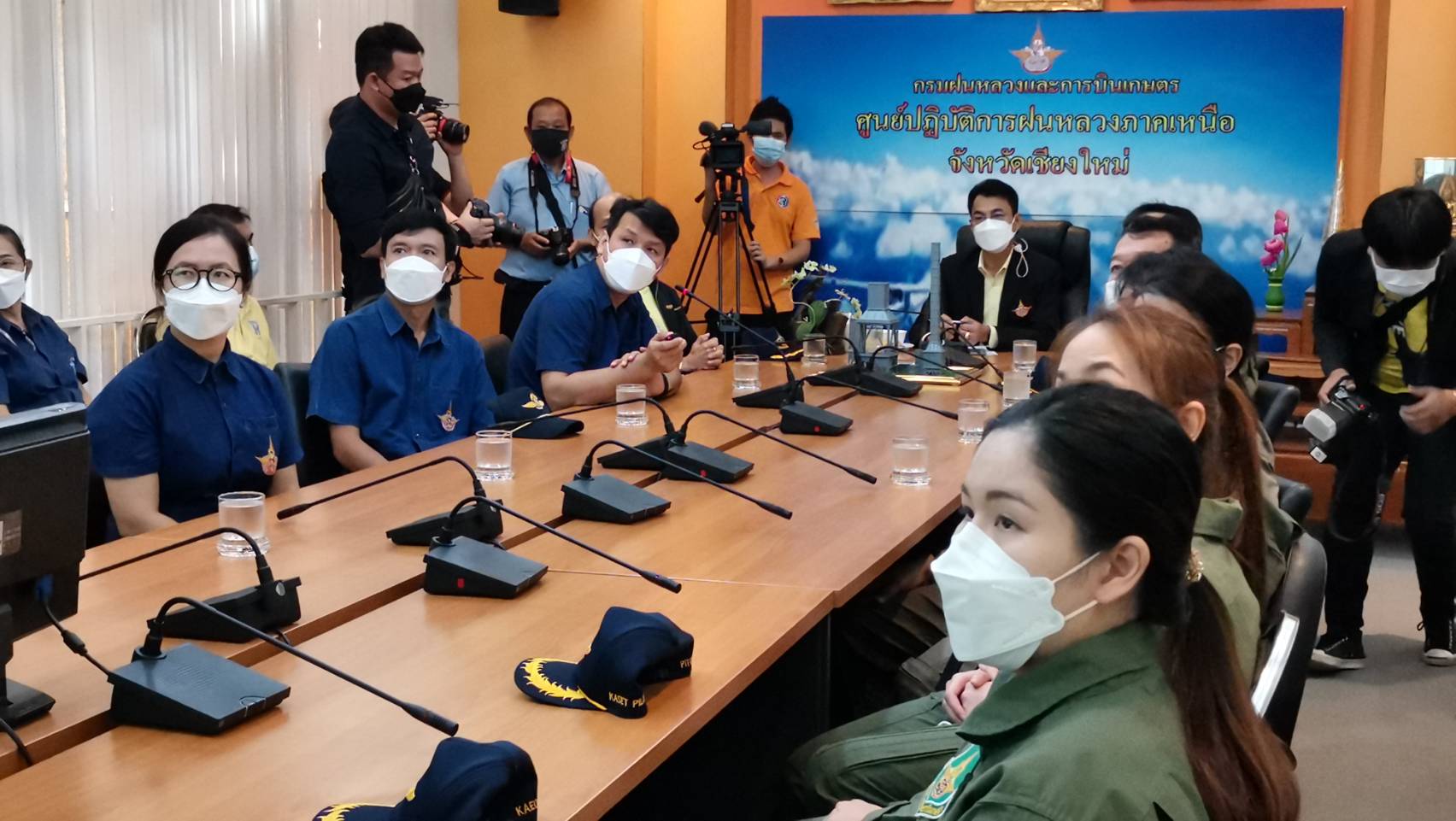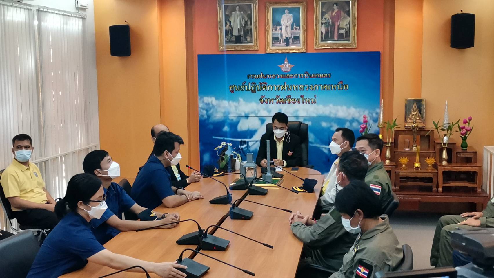 โดยมีนายรังสรรค์ บุศย์เมือง ผู้อำนวยการศูนย์ปฏิบัติการฝนหลวงภาคเหนือจ.เชียงใหม่ และนายอัธยา อรรณพเพ็ชร ผู้อำนวยการโครงการส่งน้ำและบำรุงรักษาแม่กวงอุดมธารา และหน่วยงานที่เกี่ยวข้องให้การต้อนรับ
