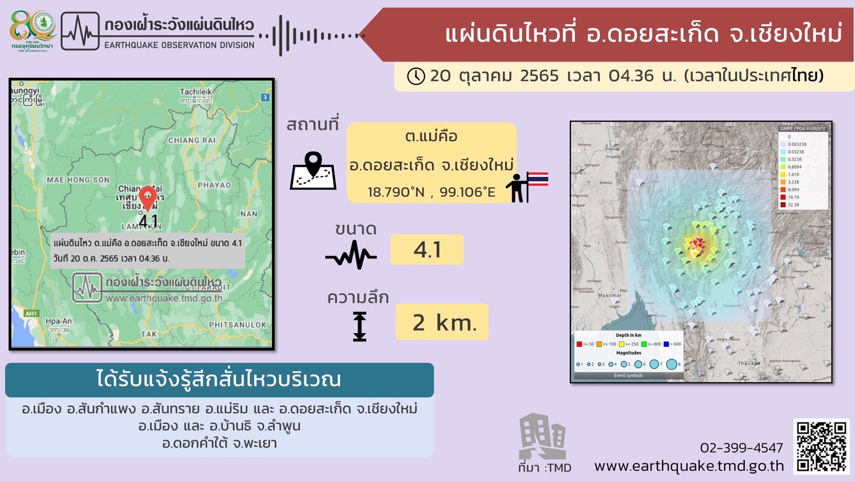 สำหรับสถานการณ์แผ่นดินไหว ในช่วงวันที่ 19-20 ตุลาคม 2565 ตรวจพบเหตุการณ์แผ่นดินไหว