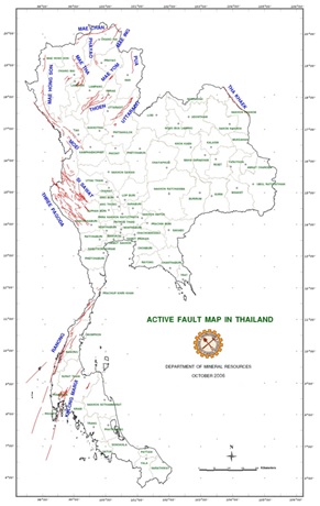 รูปที่ 1 รอยเลื่อนมีพลังในประเทศไทย