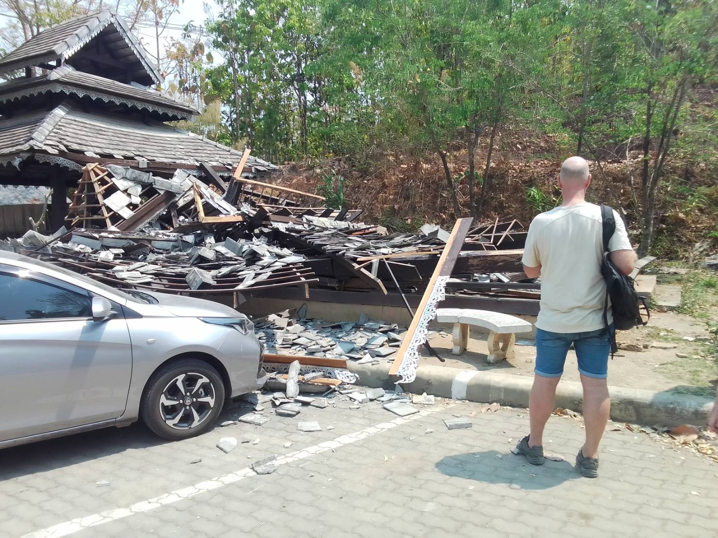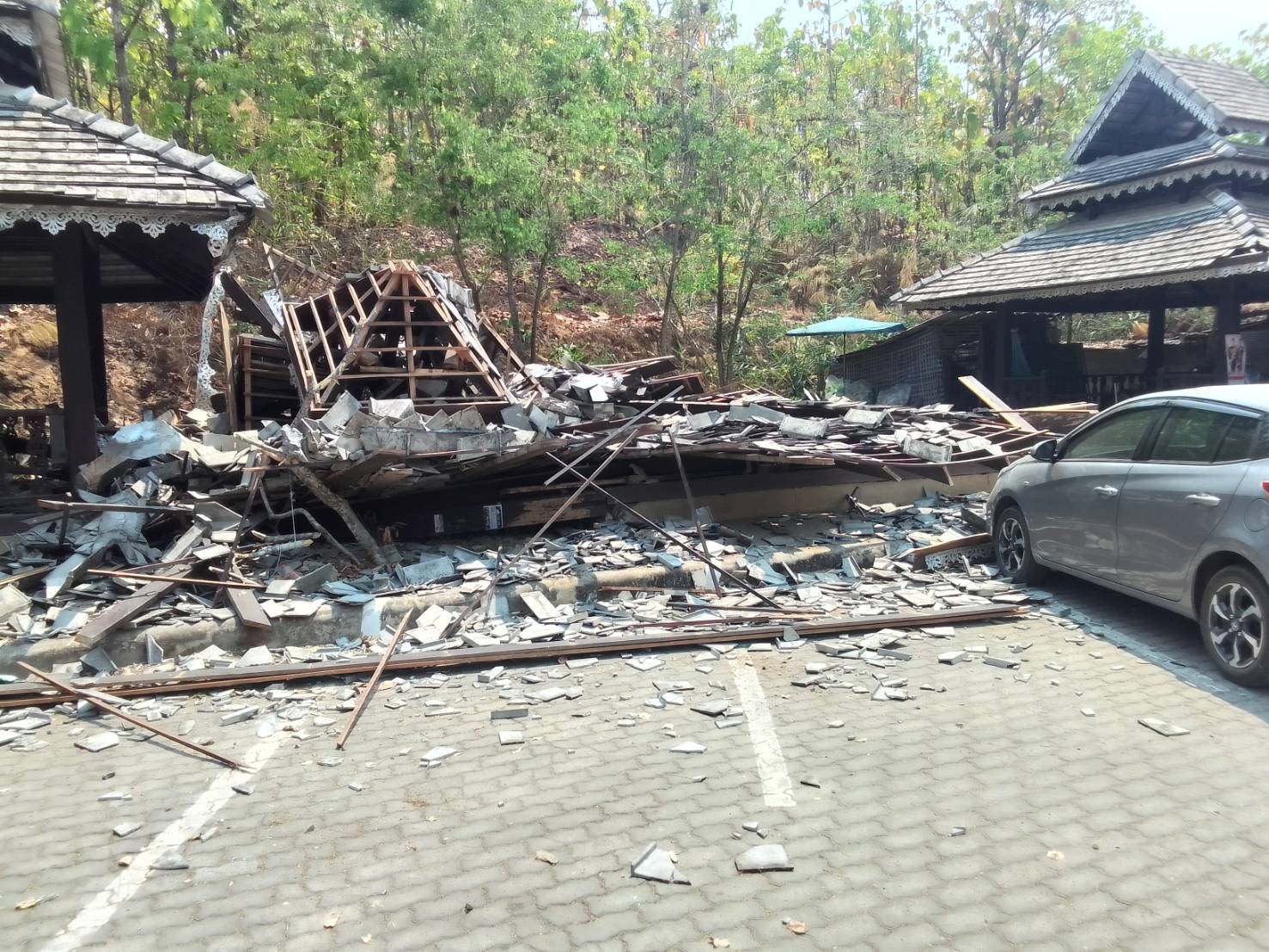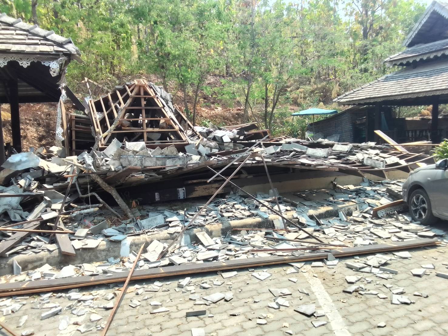 ผู้ใหญ่บ้านหมู่ 10 ต.ทุ่งยาว อ.ปาย จ.แม่ฮ่องสอน รายงานถึงผลกระทบจากแผ่นดินไหวว่า ในเบื้องต้นพบว่า ศาลาพักร้อน แหล่งท่องเที่ยวกองแลนพัง 1 หลัง ไม่มีผู้บาดเจ็บ