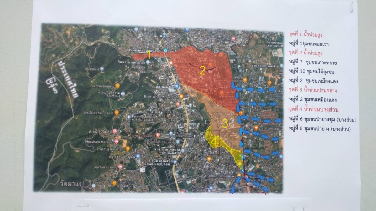 ผู้ว่าราชการจังหวัดเชียงรายกล่าวว่า หลายพื้นที่มีอัตราน้ำลดลงอย่างต่อเนื่อง บางพื้นที่ถนน สะพาน ได้รับความเสียหายผลจากน้ำกัดเซาะ พื้นที่นาของชาวเกษตรกรได้รับผลกระทบทำให้น้ำท่วมขังเป็นจำนวนมาก จึงได้มอบหมายให้หน่วยงานที่เกี่ยวข้อง เร่งดำเนินการซ่อมแซม และเข้าช่วยเหลือประชาชนที่ได้รับผลกระทบ แต่ต้องคำนึงถึงความปลอดภัยเป็นอันดับแรกเสมอ พร้อมกล่าวว่าร้านค้าบางส่วนในพื้นที่ตลาดสายลมจอยได้เริ่มเปิดแล้ว ซึ่งคาดว่าร้านค้าจะสามารถเปิดเป็นปกติในเร็วๆนี้