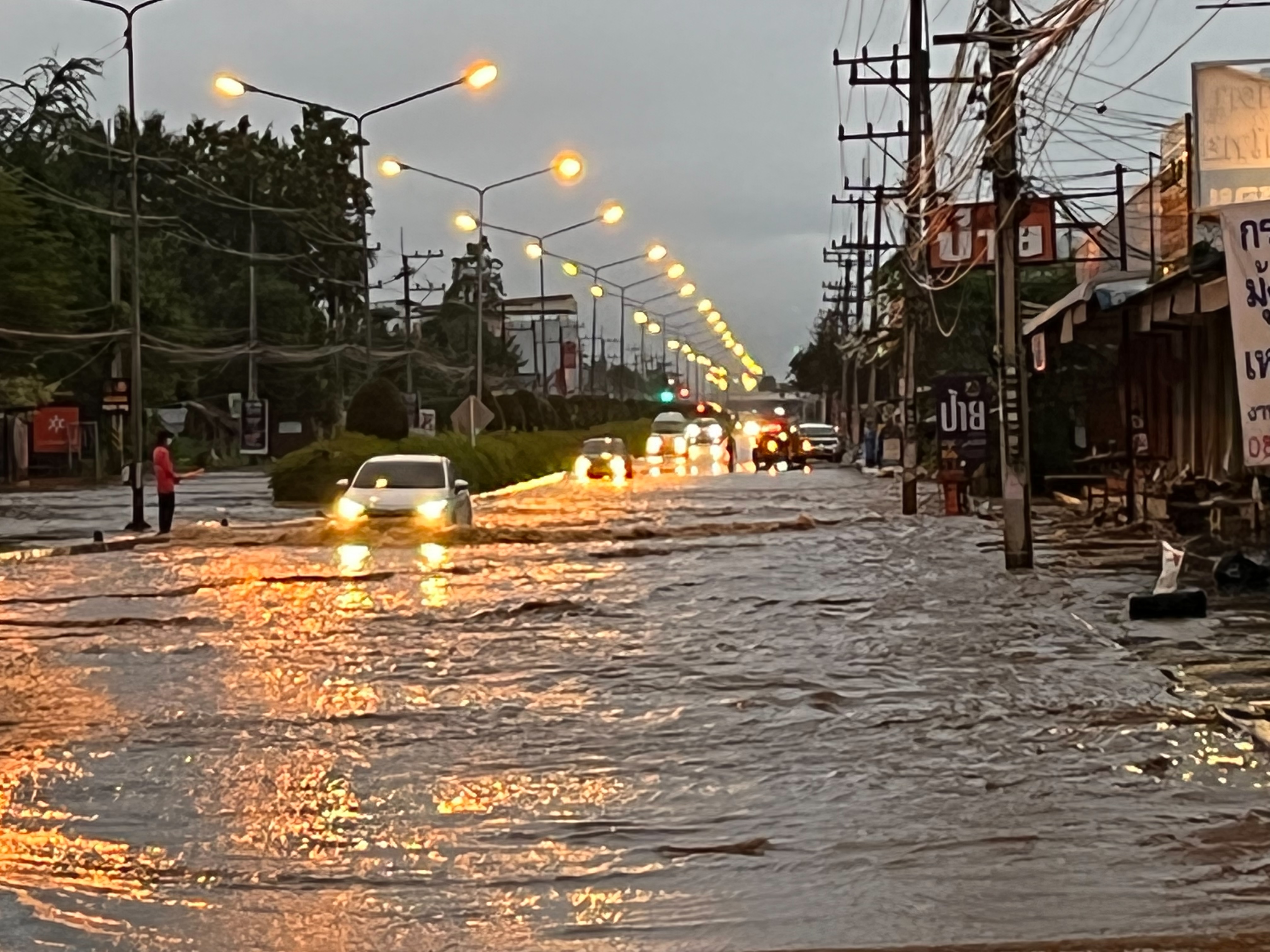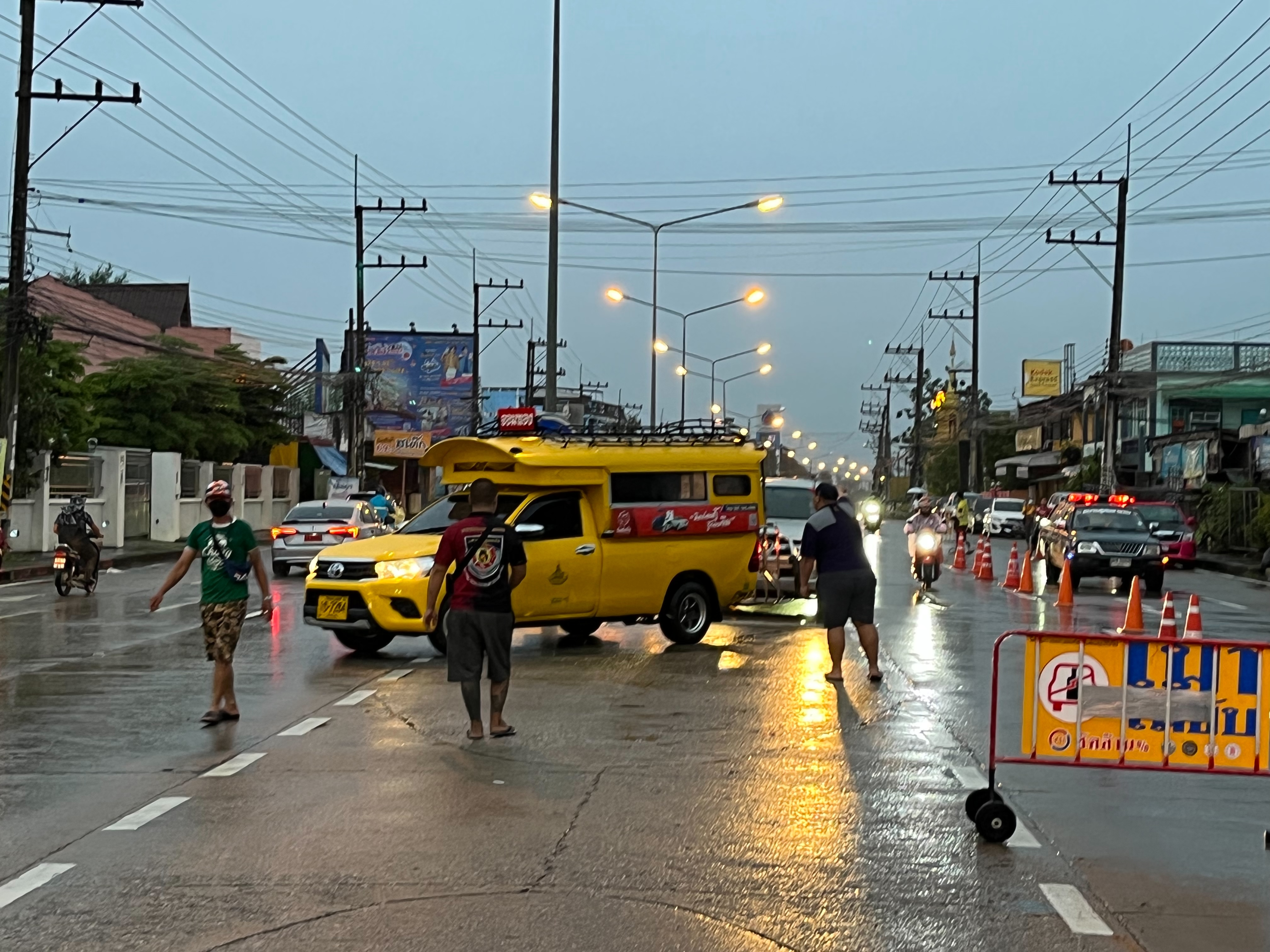 แจ้งผู้ใช้รถทุกประเภทให้ไปใช้ถนนเลี่ยงเมือง คือ ถนนเลียบคลองชลประทานไปก่อน