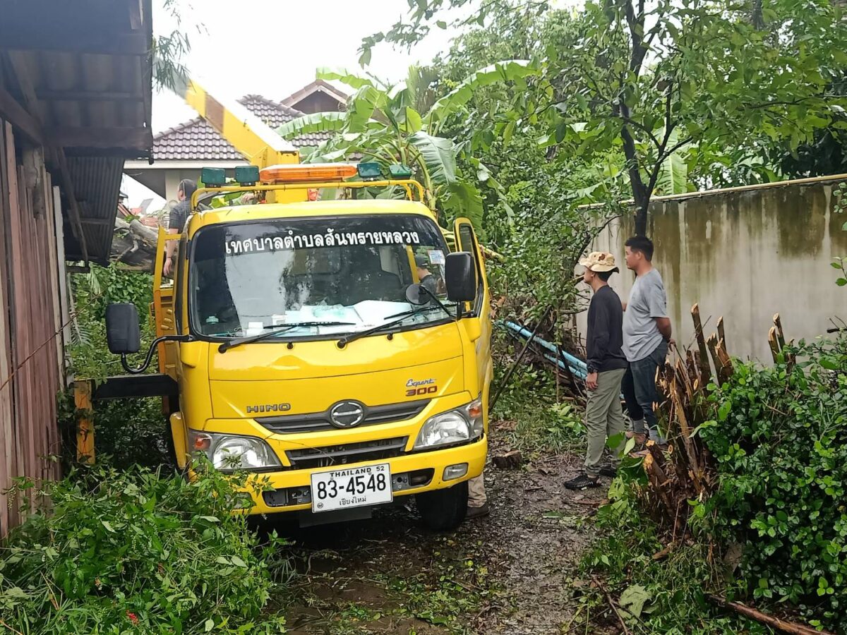 เกิดพายุในพื้นที่อำเภอสันทราย ต้นไม้โค่นทับบ้านเรือน เสาไฟฟ้าหักโค่น อำเภอร่วมกับ อปท.เร่งให้ความช่วยเหลือ