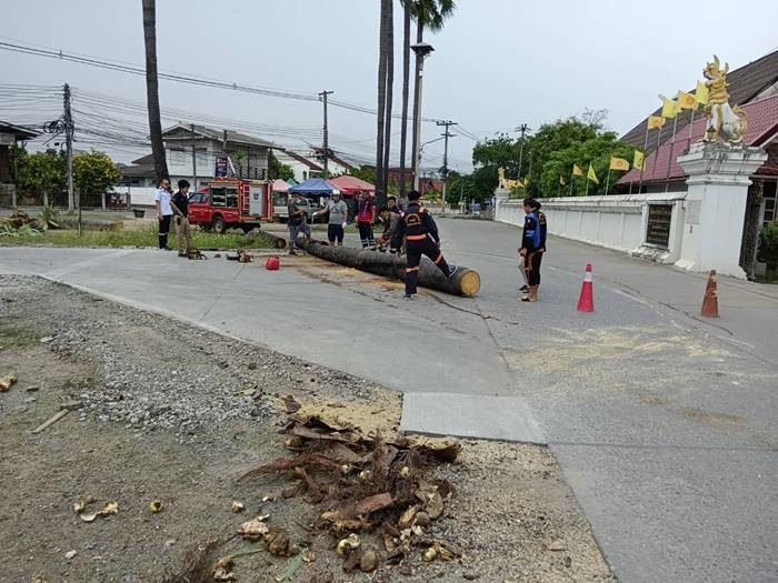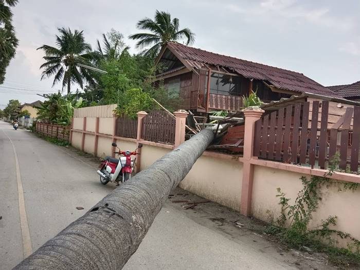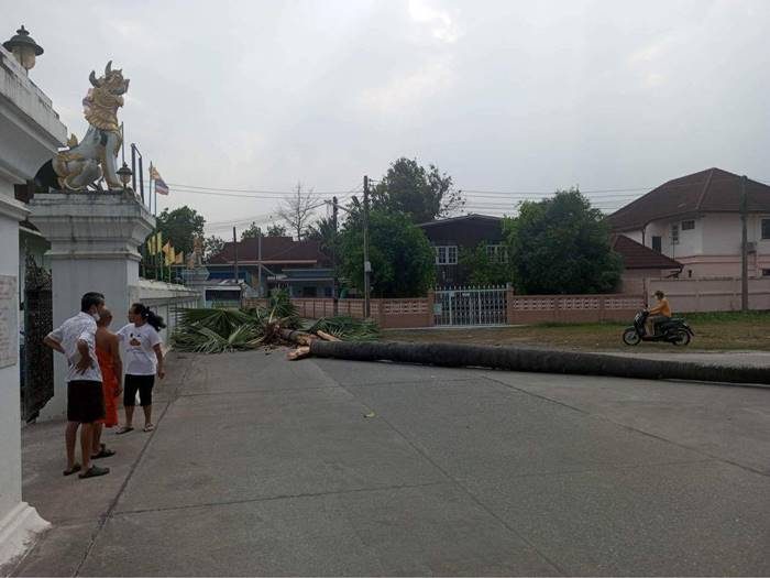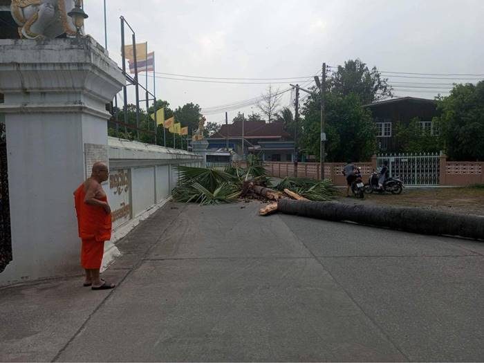 เมื่อเวลา 16.10 น. พื้นที่อำเภอสันกำแพงมีลมกรรโชก ฝนตกเล็กน้อย ต้นตาลบริเวณด้านหน้าและด้านข้างวัดสันเหนือ หมู่ที่ 5 ต.สันกำแพง อ.สันกำแพง โค้นล้ม จำนวน 2 ต้น ล้มทับ รถเฮี๊ยบ เสียหาย 1 คัน รถกระบะได้รับความเสียหาย 1 คันพร้อมโรงจอดรถ รถจักรยานยนต์ได้รับความเสียหาย 1 คัน มีผู้บาดเจ็บเล็กน้อย 1 ราย