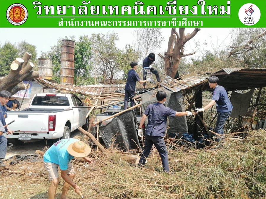 วันที่ 20-21 มีนาคม พ.ศ. 2566 นายวัชรพงศ์ ฝั้นติ๊บ ผู้อำนวยการวิทยาลัยเทคนิคเชียงใหม่ ทำหน้าที่ประธานกรรมการอาชีวศึกษาจังหวัดเชียงใหม่ ได้มอบหมายให้ นายบุญรัตน์ สว่างแจ้ง รองผู้อำนวยการ ฝ่ายพัฒนากิจการนักเรียนนักศึกษา และนายธีรวุธ ยะอูป รองผู้อำนวยการฝ่ายบริหารทรัพยากร ทีมงานโครงการพิเศษฯ คณะครูและนักเรียนนักศึกษาแผนกวิชาช่างก่อสร้าง ร่วมกับเทศบาลตำบลฟ้าฮ่ามได้ดำเนินกิจกรรมจิตอาสาบรรเทาสาธารณภัย ณ เทศบาลตำบลฟ้าฮ่าม อำเภอเมืองเชียงใหม่ จังหวัดเชียงใหม่
