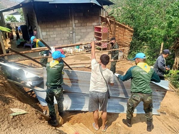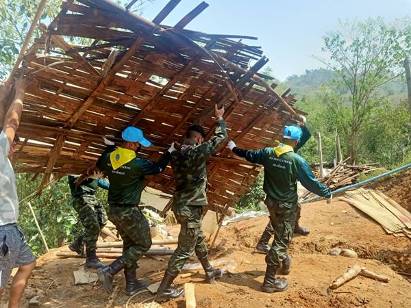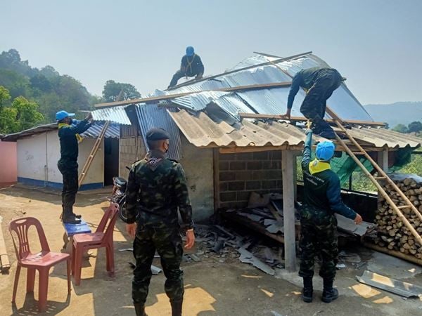 เชียงราย ทหาร ฉก.ทัพเจ้าตาก จัดกำลังช่วยเหลือประชาชน ซ่อมแซมบ้านเรือน ที่ได้รับผลกระทบจากพายุฤดูร้อน