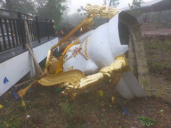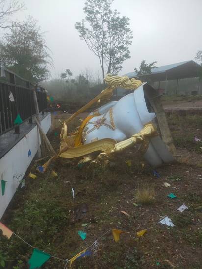เมื่อเวลา 19.30 น.วันที่ 3 เม.ย.2566 เกิดพายุฝนพัดกระหน่ำอย่างหนักในพื้นที่ อ.เชียงดาว จ.เชียงใหม่ ทำให้องค์พระพุทธรูปขนาดใหญ่ประดิษฐาน ที่โล่งแจ้งในบริเวณวัดปางเฟือง ต.ปิงโค้ง อ.เชียงดาว ล้มพลิกตะแคงได้รับความเสียหาย
