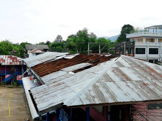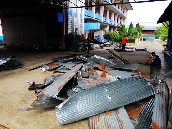 ฤทธิ์พายุฝนกระหน่ำ โรงเรียนอนุบาลแม่สะเรียง (บ้านโป่ง) หลังคาอาคารเรียนอายุกว่า 20 ปี ปลิวว่อนเสียหาย 5 ห้องเรียน และพายุลมแรงได้พัดพาสังกะสีปลิวตัดสายเคเบิ้ล สายเชื่อมต่อสัณญาณอินเตอร์เน็ต ได้รับความเสียหายหลายจุดในพื้นที่ อ.แม่สะเรียง