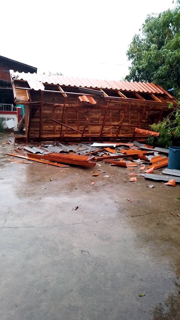 บ้านเรือนประชาชนได้รับความเสียหาย ที่ อำเภอลอง ผลกระทบ 5 ตำบล 14 หมู่บ้าน รวมจำนวน 89 หลังคาเรือนไม่มีผู้บาดเจ็บและเสียชีวิต