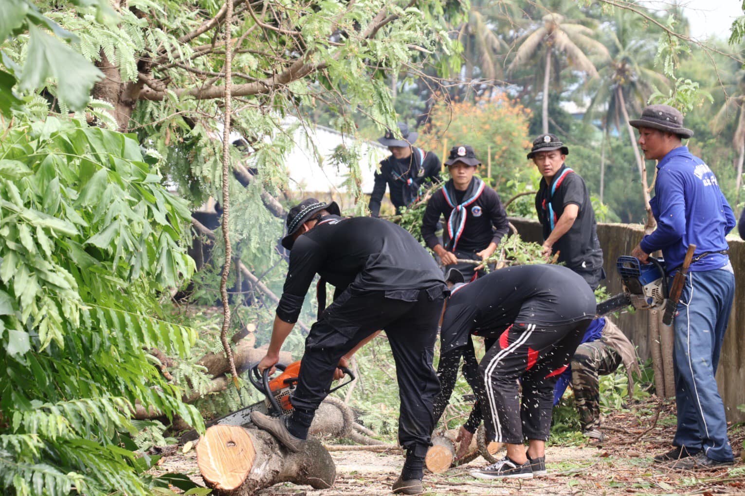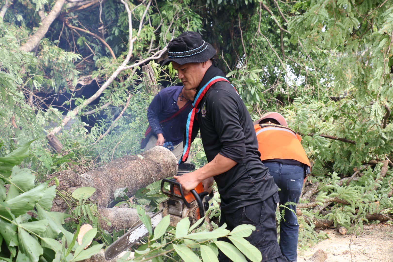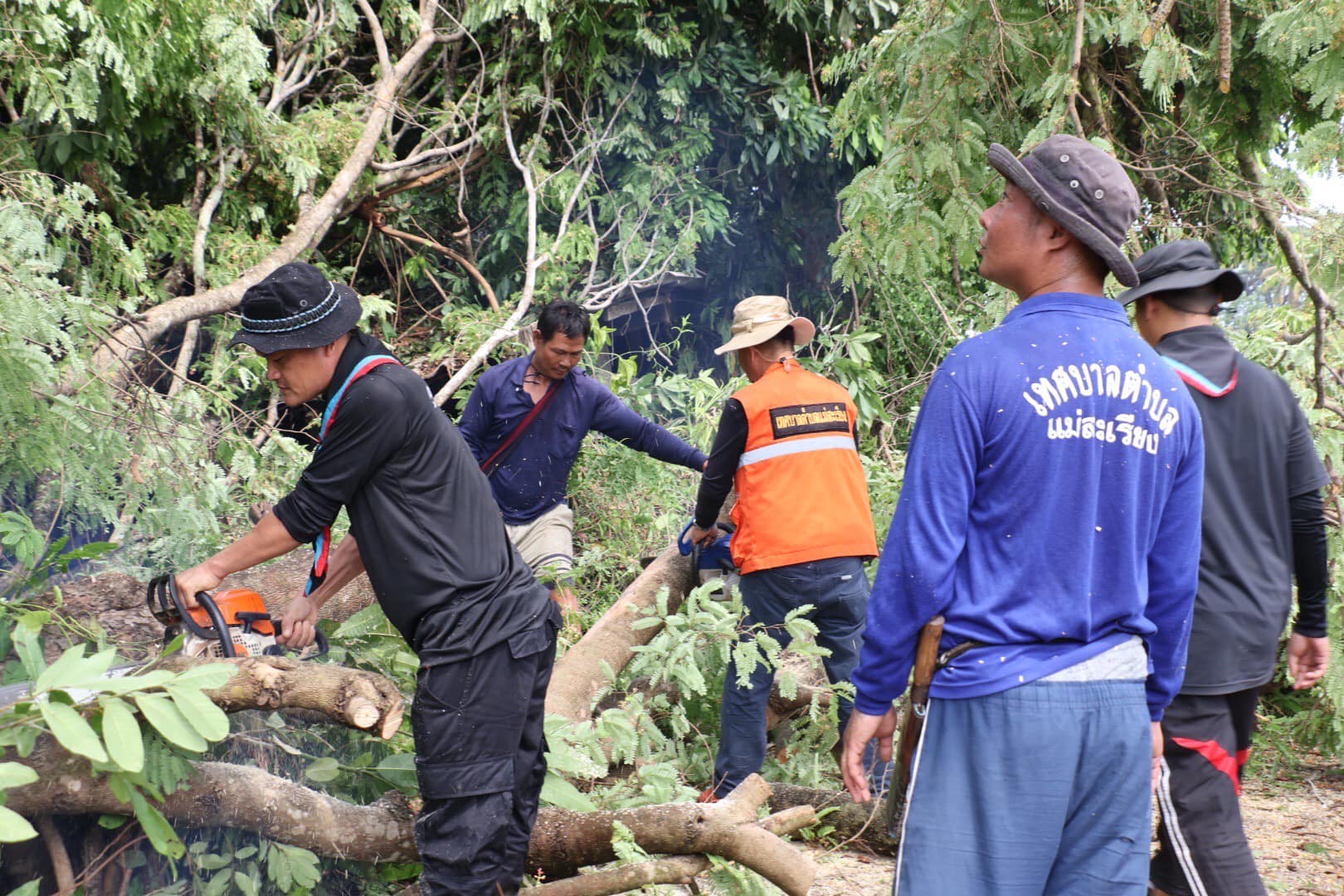 เบื้องต้นองค์กรปกครองส่วนท้องถิ่น กำนันผู้ใหญ่บ้านฯ ส่วนราชการหน่วยงานที่เกี่ยวข้อง ได้เข้าไปดำเนินการสำรวจ ช่วยเหลือ ตามอำนาจหน้าที่ตามระเบียบกฎหมายที่เกี่ยวข้อง ทางด้าน หน่วยพัฒนาการเคลื่อนที่ 36 สำนักงานพัฒนาภาค 36 แม่ฮ่องสอน นำจิตอาสา 904 ,กำลังพลจิตอาสาพระราชทาน และชุดบรรเทาสาธารณภัย นพค.36 สนภ.3 นทพ. จำนวน 10 นาย ออก ให้การช่วยเหลือประชาชนที่ประสบเหตุวาตภัย ต้นไม้โค่นล้มทับที่พักอาศัยประชาชนได้รับความเสียหาย โดยดำเนินการตัดต้นไม้ เคลื่อนย้ายต้นไม้ และรื้อถอนเปลี่ยนกระเบื้องมุงหลังคา เพื่อเป็นการช่วยเหลือ และบรรเทาความเดือดร้อนของประชาชนในเบื้องต้น ในพื้นที่บ้านน้ำดิบ หมู่ 1 ต.แม่ยวม อ.แม่สะเรียง จ.แม่ฮ่องสอน