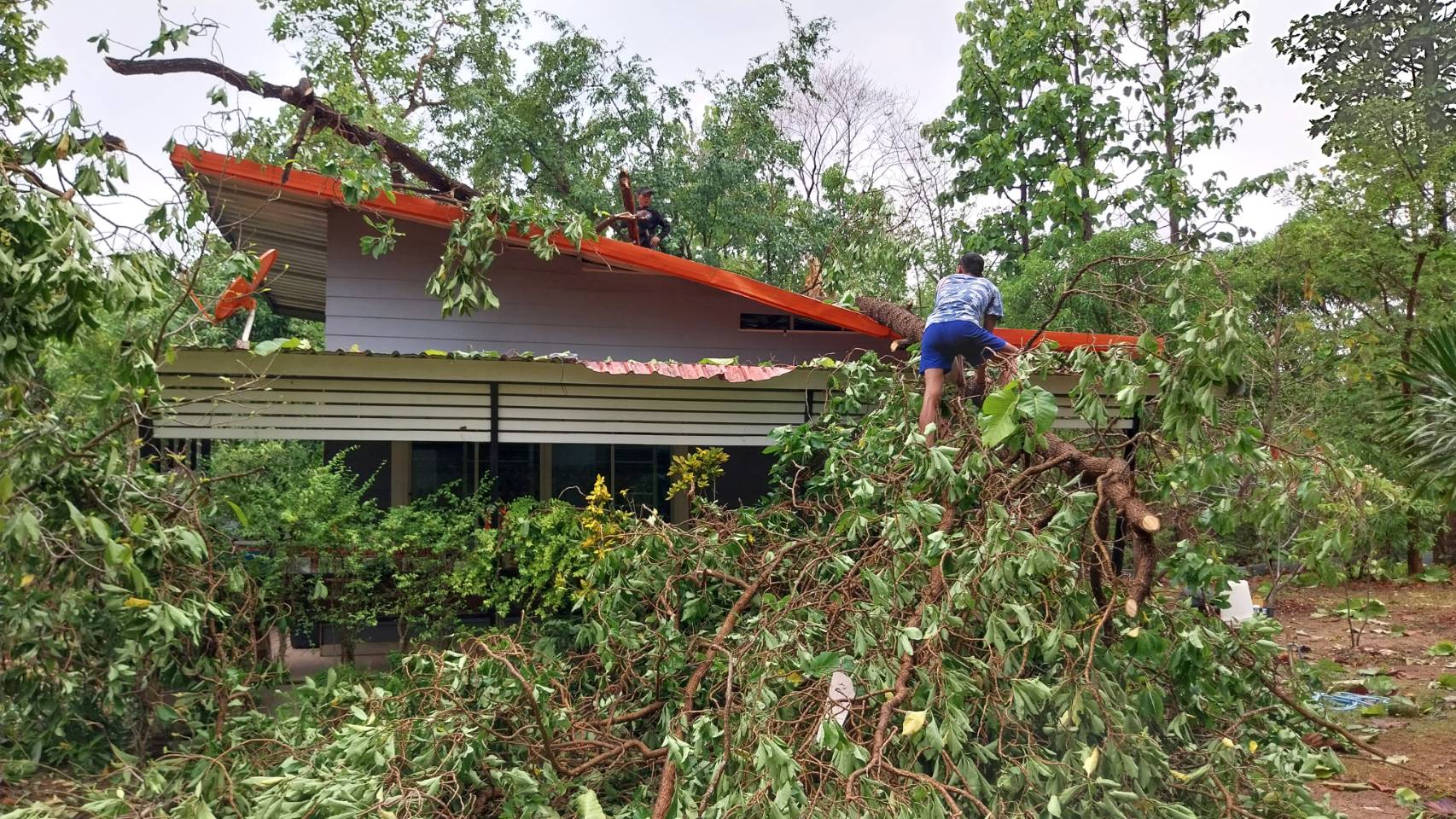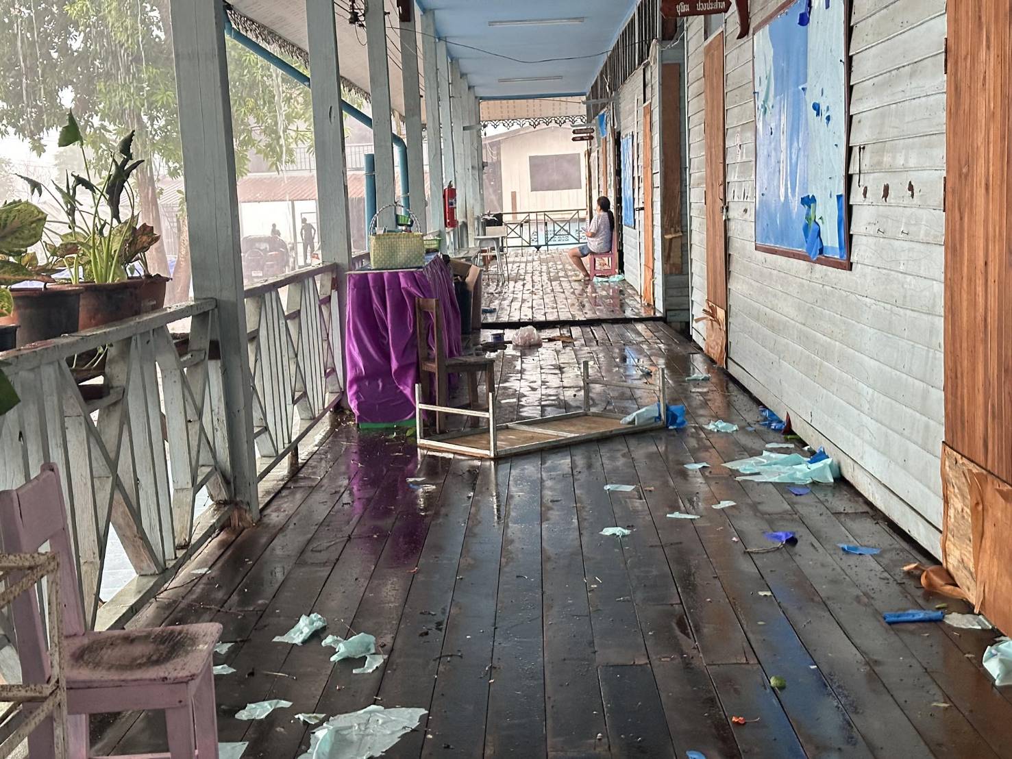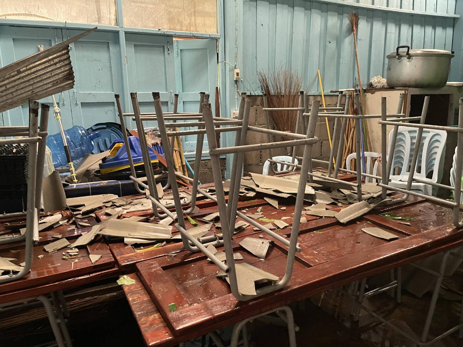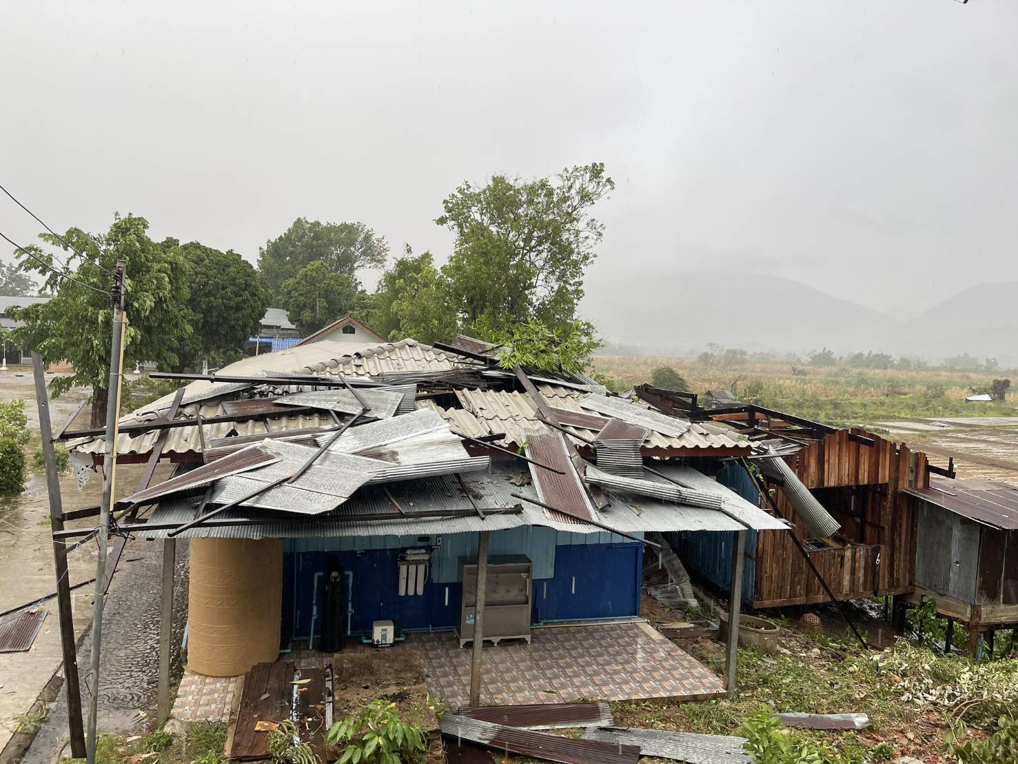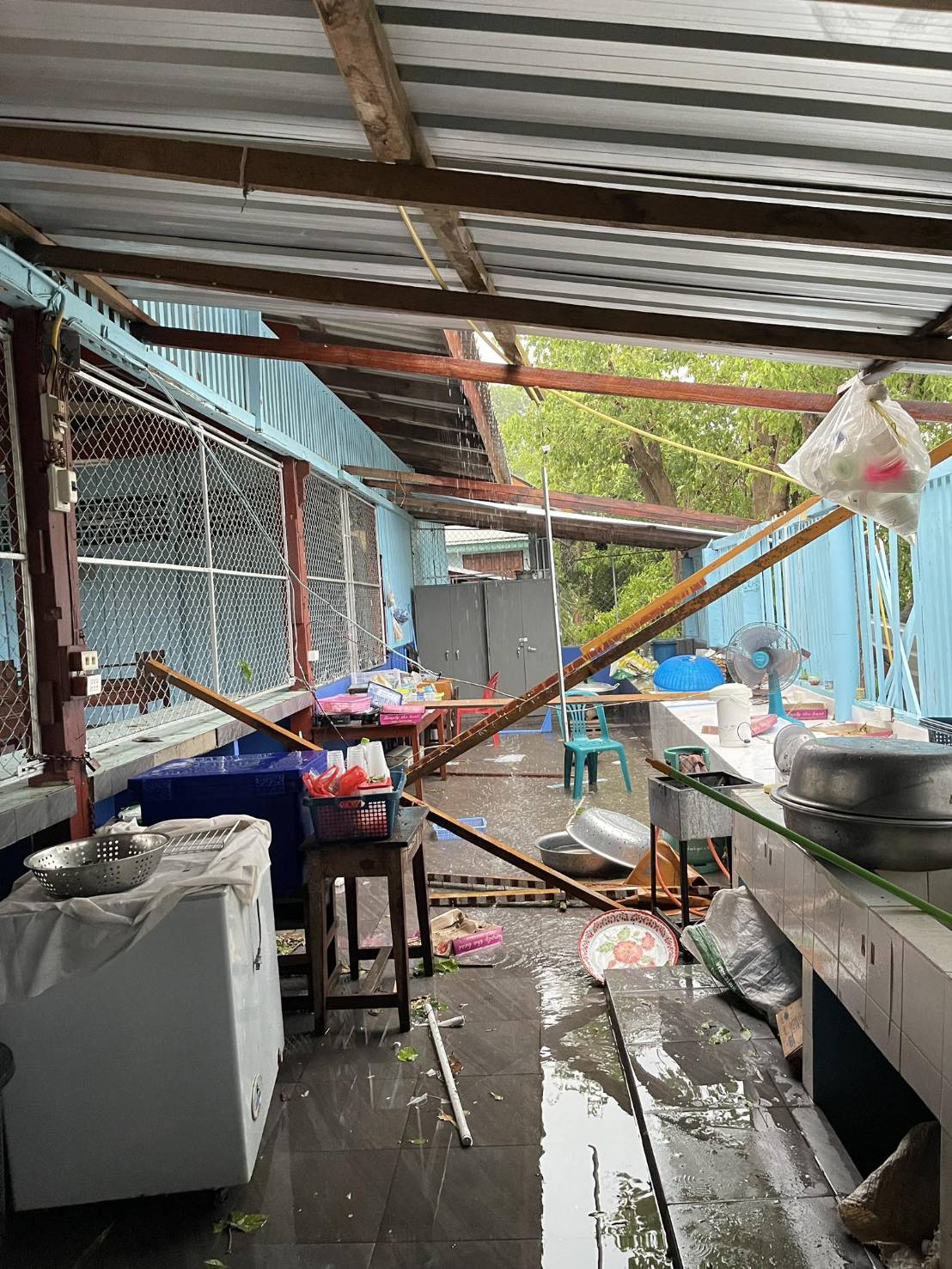 ส่วนทางด้านโรงเรียนชุมชนบ้านน้ำดิบ น.ส.กันต์กมล คุณรัตน์ ผู้อำนวยการโรงเรียนชุมชนบ้านน้ำดิบ เผยว่าโรงเรียนได้รับผลกระทบอย่างหนัก จากเหตุการณ์ ฝนตกหนักและพายุลมแรง ทำให้อาคารเรียน ห้องเรียน ห้องน้ำ และโรงอาหาร ได้รับความเสียหาย หลังคาแตก เสาไฟล้มและต้นไม้ล้ม ซึ่งทาง รร. ได้ดำเนินการเบื้องต้นประสานขอความช่วยเหลือจากเทศบาลตำบลแม่ยวม การไฟฟ้า แม่สะเรียง ผู้ใหญ่บ้าน และนพค.36 ลงพื้นที่สำรวจความเสียหายเบื้องต้น และให้การช่วยเหลือ ซึ่งยังไม่สามารถเปิดเรียนในวันนี้ได้
