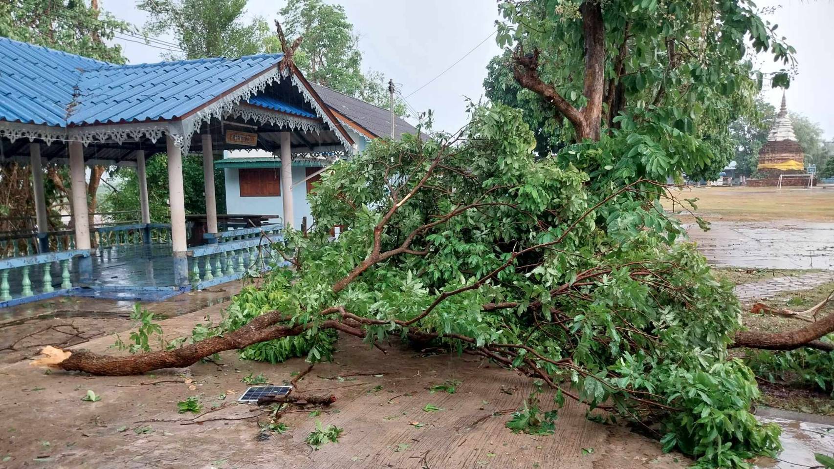 จากนั้นลงพื้นที่ตรวจสอบบ้านเรือนของประชาชน และสิ่งสาธารณประโยชน์ที่ได้รับความเสียหายจากสถานการณ์พายุฤดูร้อนในพื้นที่อำเภอแม่สะเรียง เมื่อวันที่ 14 พ.ค. จากการตรวจสอบเบื้องต้น อาคารสถานที่ของส่วนราชการหลายแห่ง ได้รับความเสียหายเป็นอย่างมาก อาทิ เทศบาลตำบลเมืองยวมใต้ สถานีวิทยุกระจายเสียงแห่งประเทศไทยแม่สะเรียง โรงเรียนไทยรัฐวิทยา 33 (บ้านทุ่งพร้าว) โรงเรียนชุมชนบ้านน้ำดิบ ตำบลแม่ยวม และบ้านเรือนของประชาชนในพื้นที่ตำบลแม่สะเรียง ตำบลแม่คง และตำบลบ้านกาศ ได้รับผลกระทบจากสถานการณ์พายุฤดูร้อนที่เกิดขึ้น ต้นไม้และป้ายโฆษณาล้มทับบ้านเรือน หลังคาบ้านเรือนถูกลมพัดปลิว ประกอบกับน้ำฝนรั่วซึมลงในอาคาร ทำให้ทรัพย์สินได้รับความเสียหาย มีราษฎรได้รับผลกระทบในพื้นที่ 4 ตำบล 26 หมู่บ้าน ราษฎรได้รับความเดือดร้อน 2,336 คน จำนวน 645 ครัวเรือน วัด 8 แห่ง โรงเรียน 8 แห่ง สถานที่ราชการและอื่น ๆ 8 แห่ง