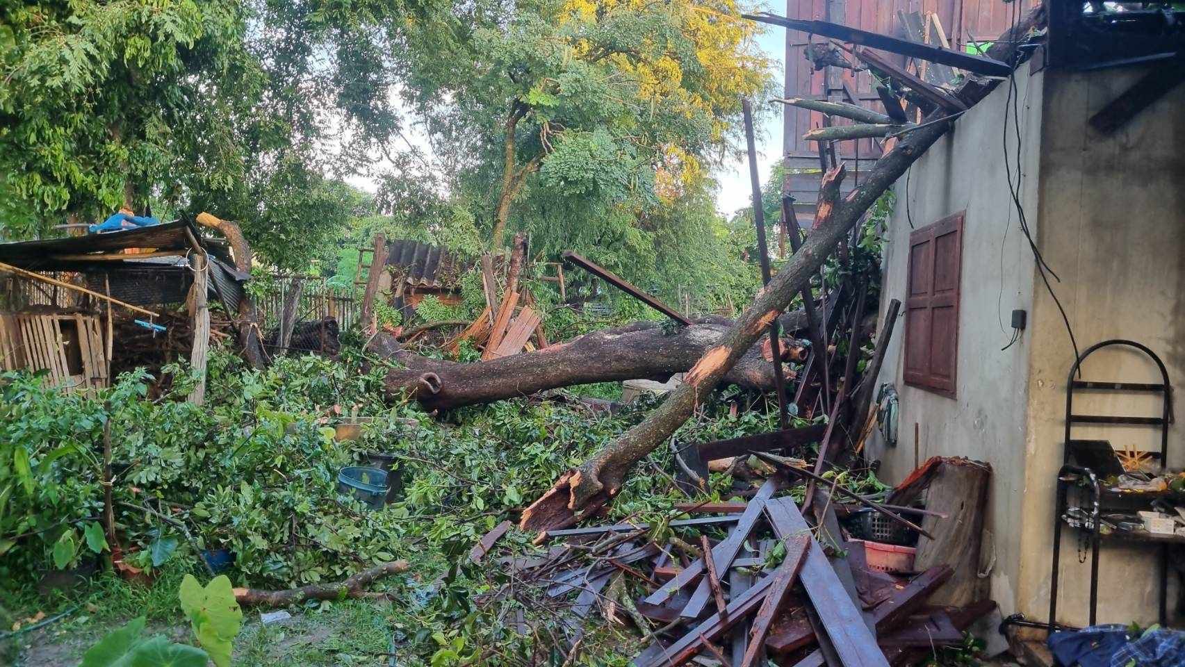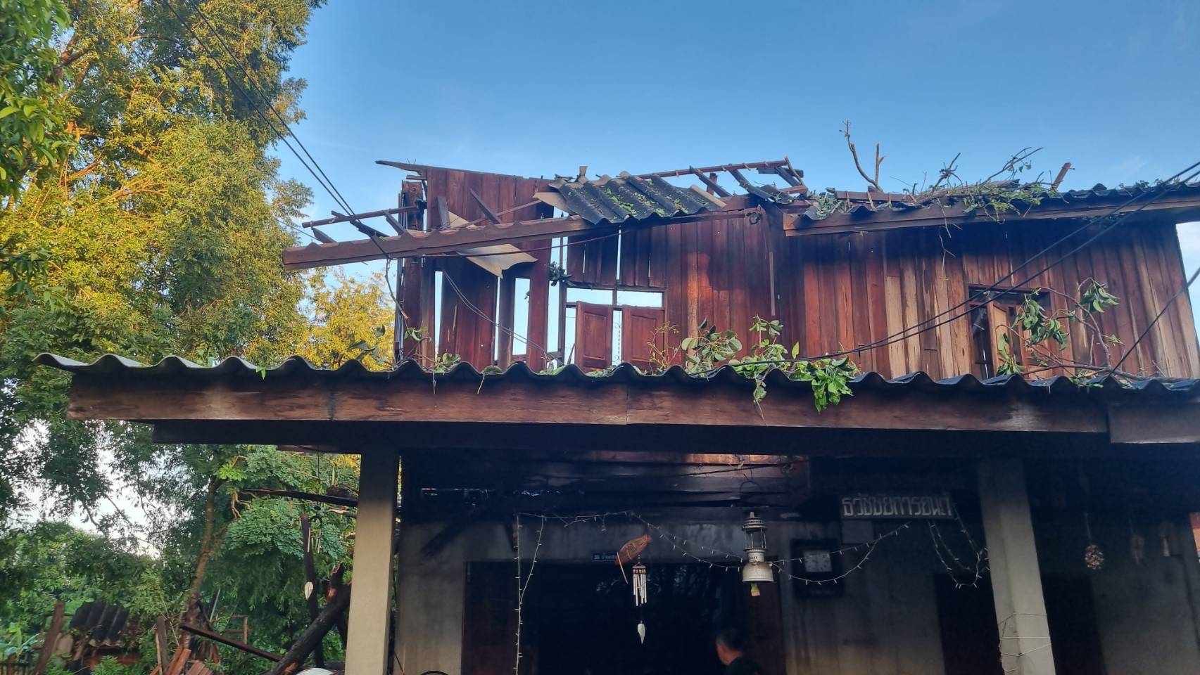 ส่วนที่โดนพายุลูกเห็บถล่มหนักกว่าทุกหลัง คือบ้านนายสวัสดิ์ ก๋าจา ในหมู่บ้านแซม หมู่ 2 ซอย 2 ต.ม่วงน้อย ถูกต้นไม้ใหญ่โค่นทับพังยับ ได้รับความเสียหายทั้งหลัง ขณะนี้ทาง ทต.ม่วงน้อย ได้เร่งออกสำรวจความเสียหาย เพื่อจะได้ช่วยเหลือกันน่อไป