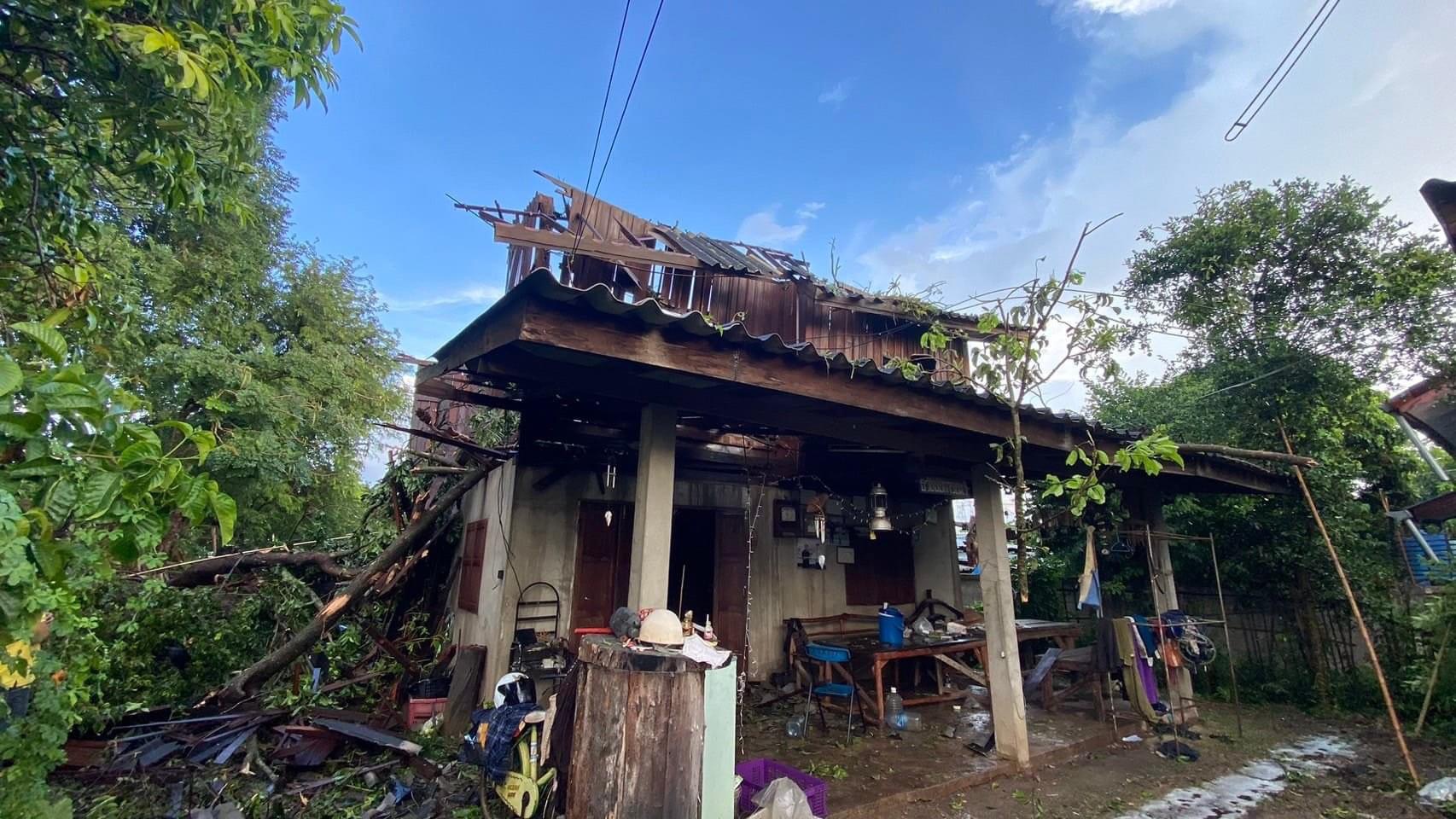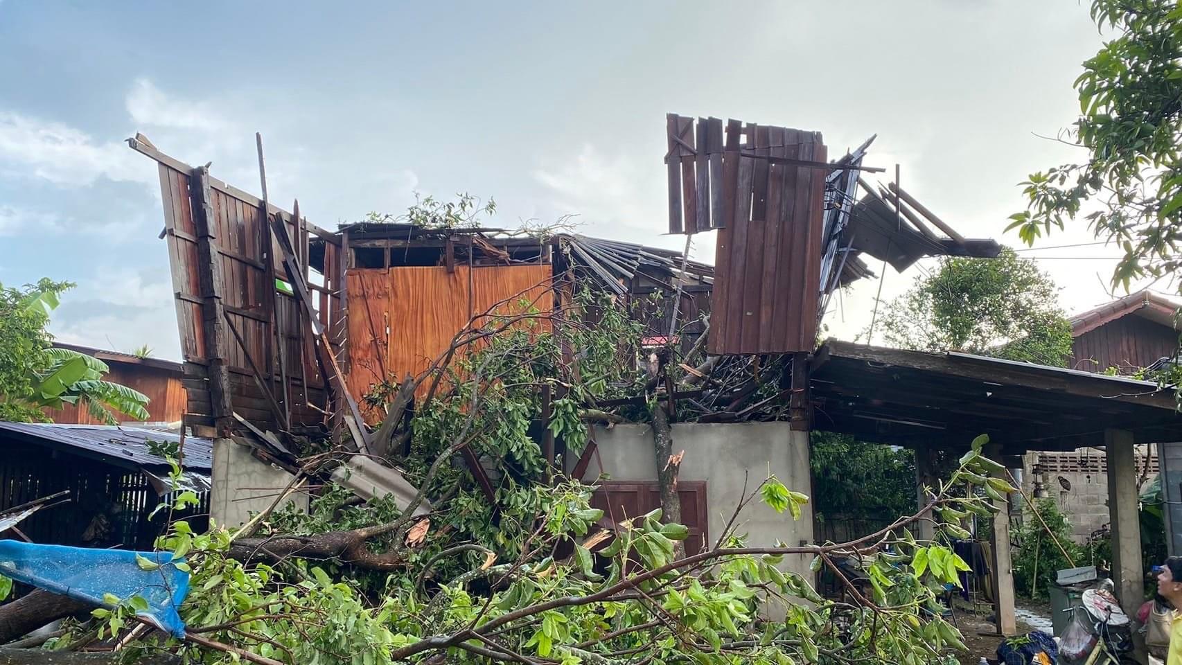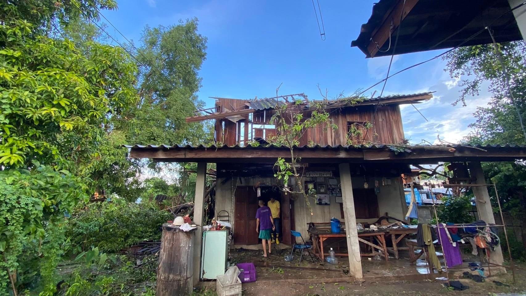 เกิดเหตุที่บ้านแซม ต.ม่วงน้อย อ.ป่าซาง จ.ลำพูน พายุลมแรงพัดบ้านของชาวบ้านหายไปทั้งหลัง ในช่วงเย็นวานนี้