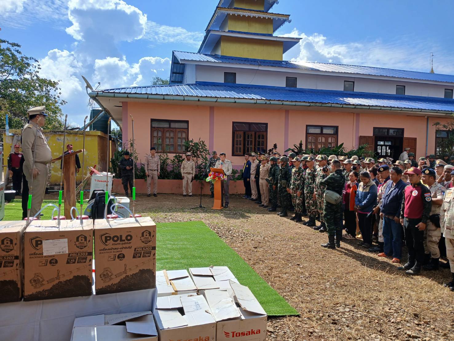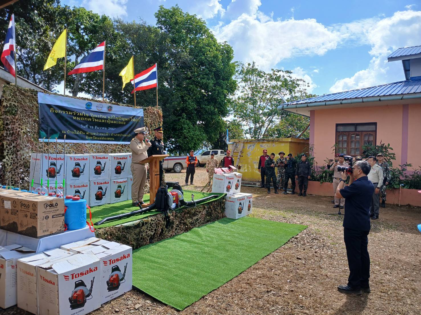 วันที่ 19 ธันวาคม 2567 นายพรเทพ เจริญสืบสกุล ผอ.สบอ.16 สาขาแม่สะเรียง เปิดเผยว่า นายชูชีพ พงษ์ไชย ผู้ว่าราชการจังหวัดแม่ฮ่องสอน พลตรี ไมตรี ชูปรีชา ผบ.กองกำลังนเรศวร สบอ.16 สาขาแม่สะเรียง และหน่วยงานที่เกี่ยวข้อง ร่วมบูรณาการและสนธิกำลัง จัดกิจกรรมร่วมใจ ป้องกัน แก้ไขปัญหาไฟป่าหมอกควันและฝุ่นละออง กลุ่มป่าลุ่มน้ำปาย โดยได้มอบอุปกรณ์ดับไฟป่า ให้กับหน่วยงานที่เกี่ยวข้อง รวมถึงประชาชนบ้านไม้ลัน และได้ร่วมกิจกรรมเก็บใบไม้ใส่เสวียน เพื่อลดการเผาเศษใบไม้ ลดปัญหามลพิษ และปัญหาหมอกควัน ณ บ้านไม้ลัน ตำบลปางมะผ้า อำเภอปางมะผ้า จังหวัดแม่ฮ่องสอน