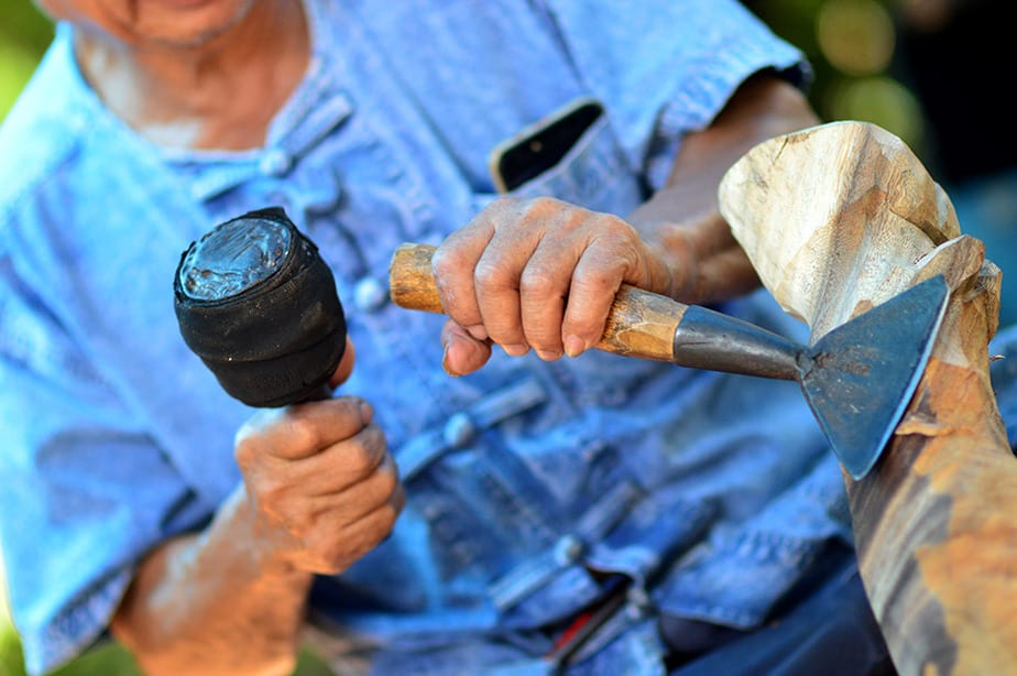 ภูมิปัญญาการแกะสลักไม้งานศิลปะหัตถกรรมที่ช่างแกะต้องใช้ความชำนาญและจินตนาการสร้างสรรค์ เริ่มจากเลือกสรรค์ไม้ที่จะแกะสลักจนได้ลักษณะตามต้องการ ค่อยแกะจากโครงร่างคราวๆบรรจงแกะไม้จนค่อยๆเป็นรูปเป็นร่าง แล้วค่อยเก็บรายละเอียดเล็กๆน้อยๆ ทำสีเคลือบเงาไม้จนเสร็จ ทำให้ไม้แกะรูปสัตว์ราวมีชีวิตชีวาจนได้รับรางวัลการันตีหมู่บ้านโอทอปเพื่อการท่องเที่ยว