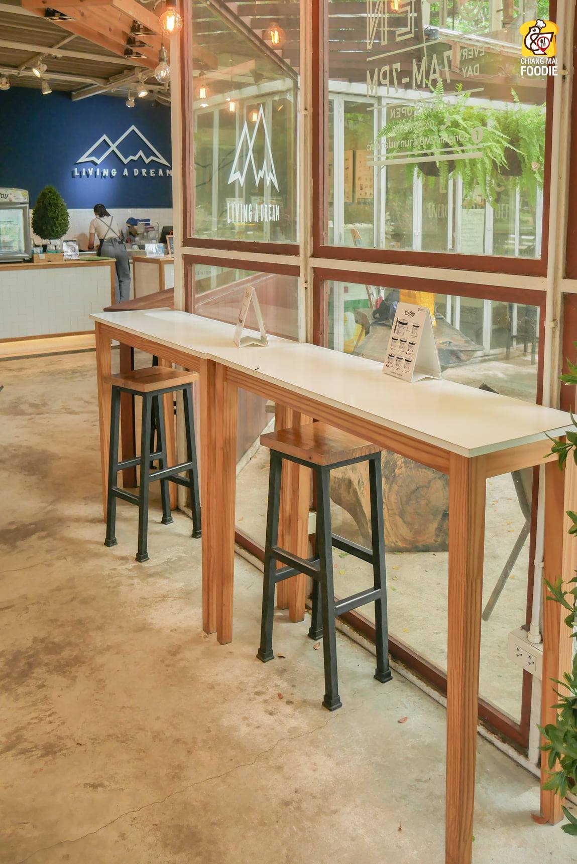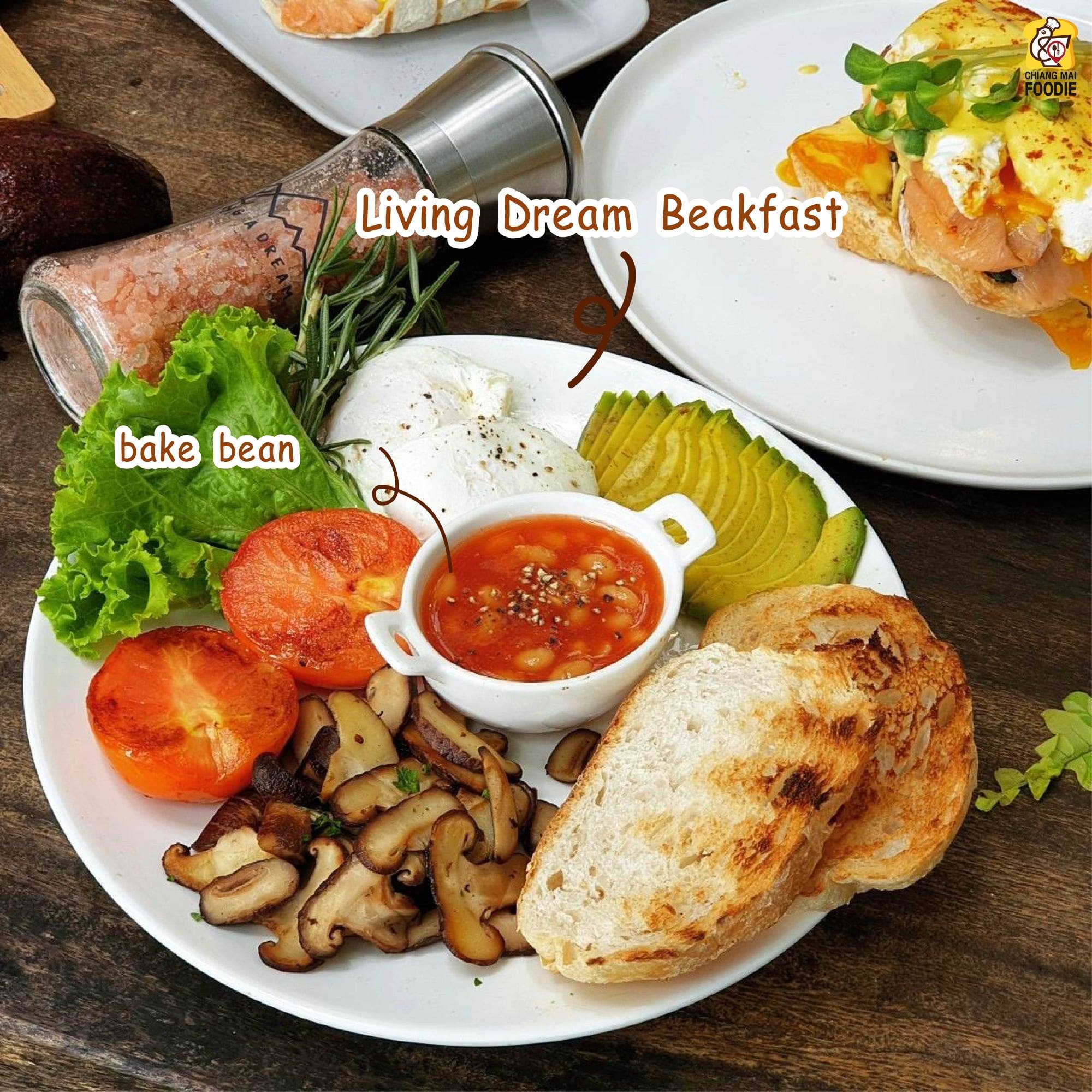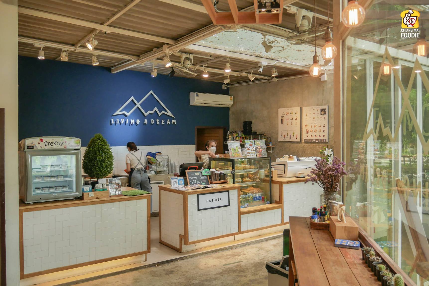 วันนี้แอดมาเดินเล่นสูดอากาศตอนเช้าที่อ่างแก้ว มช. ได้เห็นบรรยากาศที่มีคนไม่เยอะโล่งหูโล่งตา อากาศแจ่มใส แต่ก็ต้องสะดุดตากับคาเฟ่ร้านหนึ่งริมอ่างแก้ว ที่มีคนมานั่งชิลล์ นั่งทำงาน ทั้งคนไทยและฝรั่ง แอดเลยเข้าไปหาอะไรกินพอเห็นเมนูก็ถึงกับเลือกไม่ถูกเลยเพราะนอกจากอาหารจะน่ากินแล้ว ราคาก็ยังดีจนต้องสั่งเมนูแนะนำของร้านมากินมีทั้ง SMOKED SALMON AVOCADO TOAST น้องม่อนสดๆชิ้นใหญ่เต็มคำเสิร์ฟพร้อมอโวซัลซาที่ทาบนขนมปัง และ WHITE CHOCO LATE กาแฟที่หอมกลิ่นของไวท์ชอค รวมถึงยังมีกาแฟร้อน หอม ละมุน กับเสิร์ฟโดยบาริสต้าประสบการณ์ตรงจากออสเตรเลีย อะที่สำคัญร้านนี้เขาจัดเต็มเมนูอโวคาโด้ ทั้งคาว หวาน ที่มีให้ทานตลอดปี แม้ในช่วงอโวคาโด้หมดฤดูกาล ทางร้านก็สรรหามาเสิร์ฟได้เสมอนะ พูดละก็อยากกินไปทุกเมนูเลย ไม่ใช่แค่คุณภาพของอาหารนะที่ดี แต่ราคายังคุ้มค่ากับอาหารที่ได้กินอีกด้วย เขาเน้นทำเองเรียกได้ว่าทำเองแทบทุกเมนูมีแค่ผักกับผลไม้แหละที่ซื้อมา555 แถมยังเป็นสูตรจากออสเตรเลียแท้ด้วย ร้านนี้เข้ามีทั้งโซน indoor และ outdoor นะ ถ้าอยากได้ความรู้สึกแบบสบายๆสูดอากาศ นั่งชิลล์ ฟิวมาเที่ยวดอยแนะนำโซน outdoor เลยจ้ะ นั่งแล้วรู้เลยว่าทำไมร้านนี้ถึงชื่อ Living a Dream ก็ทั้งบรรยากาศทั้งวิวอ่างแก้วที่เห็นกันแบบพาโนราม่ากันเลยไงล่ะ
