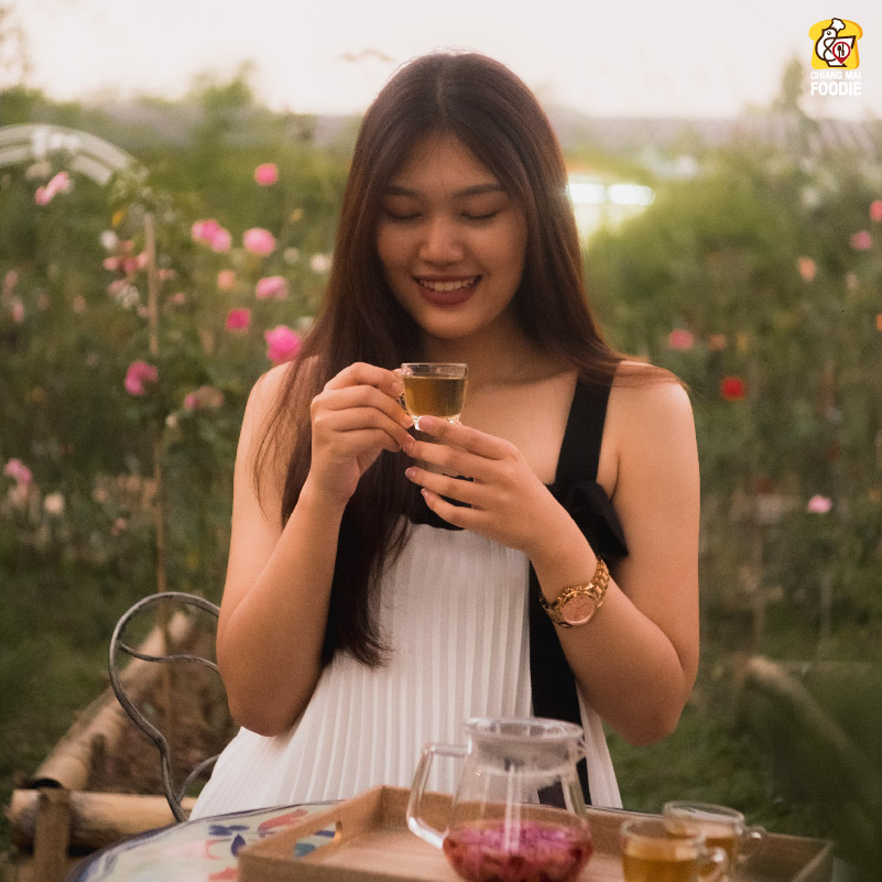 ที่เราได้มาลิ้มลองวันนี้คือ Heart of Rose Ville ตัวชาสูตรสมุนไพรบำรุงหัวใจ ที่มีส่วนผสมของเกสรบัวหลวง ขิงแห้ง มะลิ น้ำมันหอมระเหยจากกุหลาบ จะมีขั้นตอนการกลั่น ราว 7 นาทีค่ะ เป็นอีกหนึ่งโมเม้นต์การทานชาที่น่ารัก มาก ๆ ที่นี่เค้ามีถึง 15 สูตรชาด้วยกันนะคะ ใครอยากลองก็แวะมาลองวันละสูตรกันได้เลยน๊า