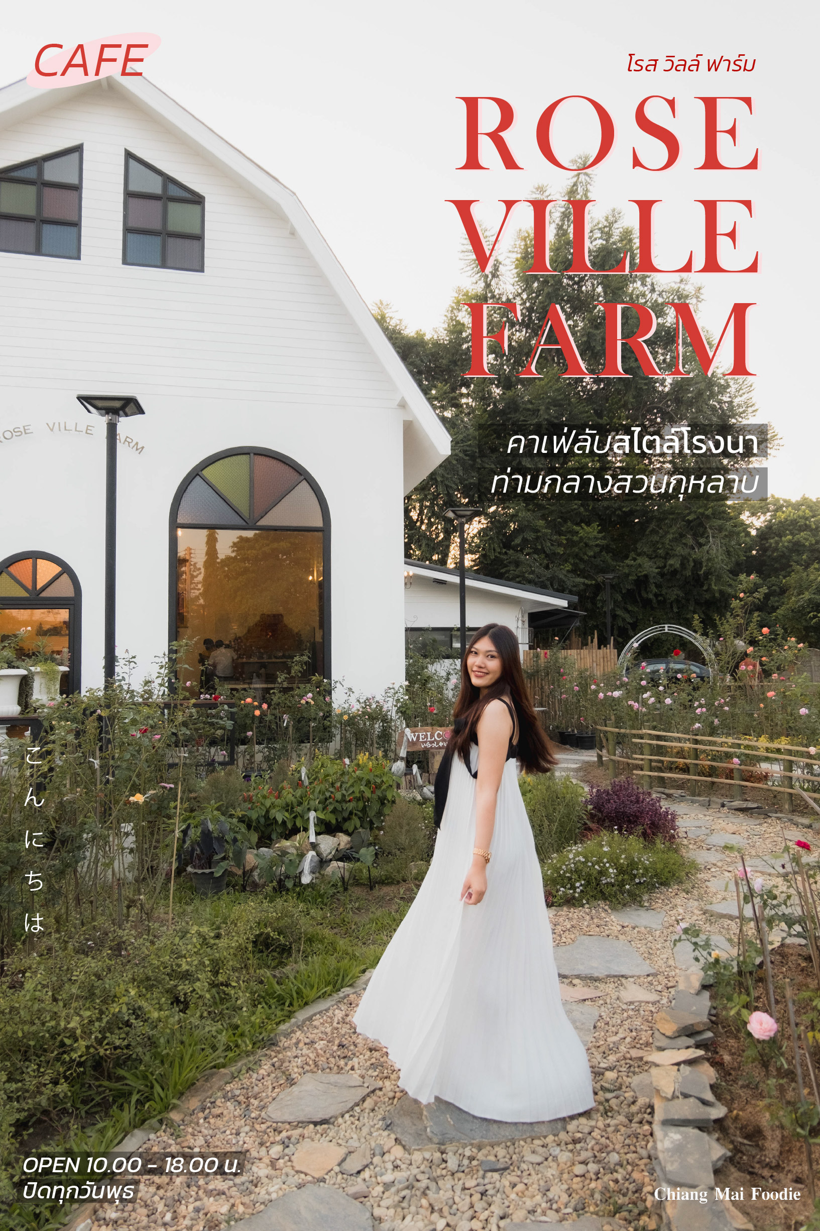 ทุกคนนนน เจ่เจ้แอดมินไปเจอคาเฟ่ลับสไตล์โรงนา ที่หรูหราขาวสะอาด ตั้งอยู่ท่ามกลางสวนกุหลาบที่มีกลิ่นอาย ความเป็นสวนแบบอังกฤษ แต่ก็มีความเป็นญี่ปุ่นแทรกด้วย หืมม ตื่นเต้นมาก ที่ได้มาคาเฟ่แห่งนี้ ไม่ต้องเดินทางไปไกลถึงบนดอย แวะมาบ่อยได้เกือบทุกวันเลยหล่ะ เตรียมชุดแต่งเครื่องกันมาถ่ายรูปงาม ๆ กันได้เลย