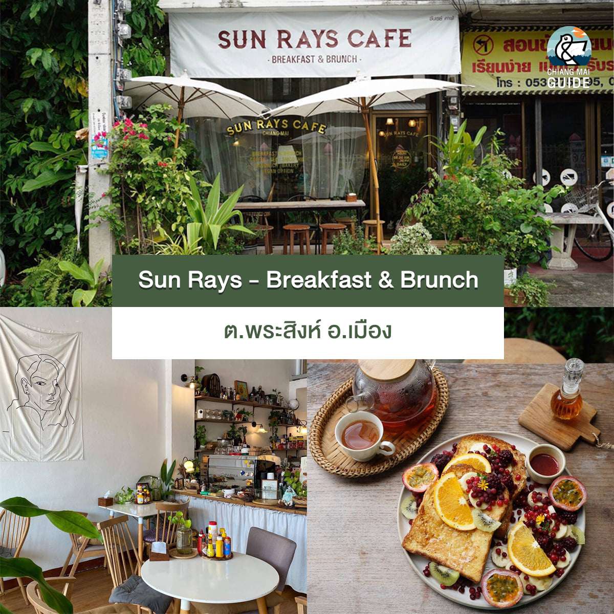เริ่มต้นทริปด้วยการเติมพลังกับร้านอาหารเช้าหลังวัดพระสิงห์ ที่นี่ให้บริการเมนูกาแฟ Brunch และเมนูวาฟเฟิลต่าง ๆ เมนูตกแต่งสวยงามอลังการ รสชาติอร่อย ราคาไม่แรงอีกด้วย