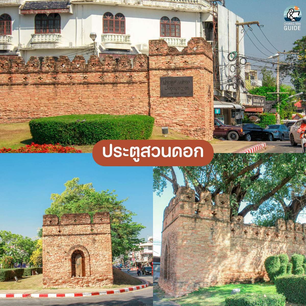 ประตูสวนดอก ตั้งอยู่ทิศตะวันตกของเมือง(ด้านขวา) ที่ได้ชื่อว่าสวนดอกนั้นก็เพราะพระชายาของพระยากือนา ชื่นชอบการทำสวนดอกไม้บริเวณนั้นมากมาย