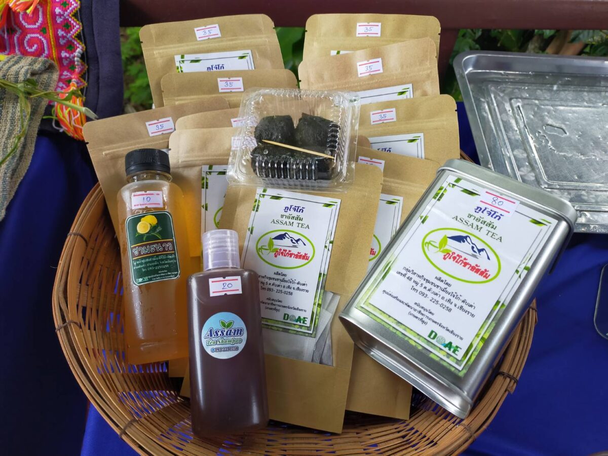 “ผลิตภัณฑ์จากชาอัสสัม” ซึ่งเป็นชาป่า ในอดีตชาวบ้านจะตากแห้งแล้วนำไปบรรจุเป็นซองสำหรับนำไปชงดื่มร้อนๆ แต่ปัจจุบันทางชุมชนได้พัฒนาให้มีความหลากหลาย ได้แก่ การแปรรูปเป็นเมี่ยง ทำเป็นชามะนาว หรือแชมพูชาอัสสัม เป็นต้น และยังมีผลิตภัณฑ์ขึ้นชื่อที่เป็นที่รู้จักของชาวบ้านในพื้นที่ก็คือ ผ้าเขียนเทียน ผ้าปักลาย เครื่องเงิน หรือแม้แต่ผลิตผลทางการเกษตรในพื้นที่หลายอย่างก็เป็นสินค้าที่สร้างรายได้ให้กับชุมชน เช่น กะหล่ำ กาแฟ สตรอเบอรี่ ฯลฯ
