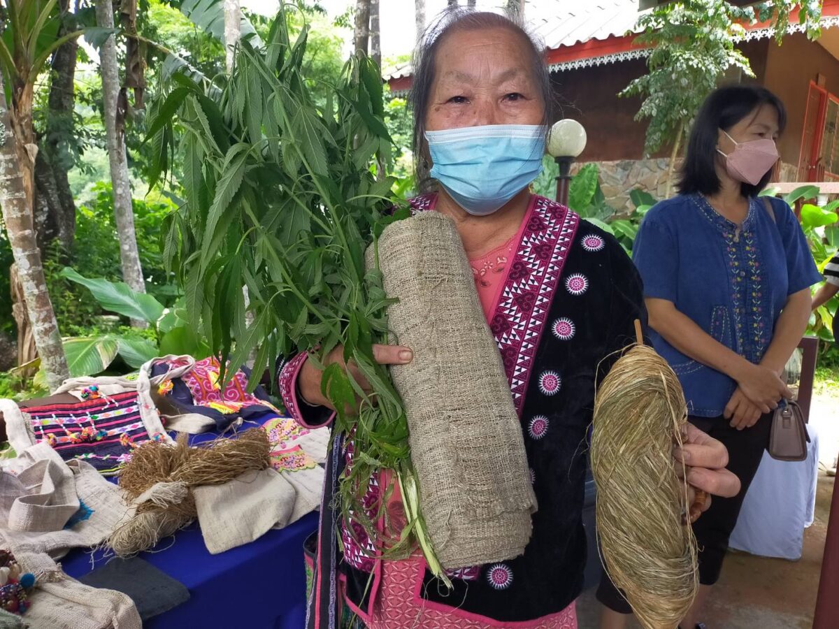สำหรับ “ภูชี้ฟ้า” ซึ่งมีที่ตั้งอยู่ในพื้นที่บ้านร่มฟ้าไทย ม.24 ต.ตับเต่า อ.เทิง จ.เชียงราย ทางตัวแทนหน่วยงานราชการ ผู้นำชุมชน และตัวแทนผู้ประกอบการ ได้นำเรียนถึงจุดเด่นของพื้นที่ ที่สามารถจะนำมาชูเป็นจุดสนใจให้นักท่องเที่ยวสามารถมาเที่ยวชมได้ตลอดทั้งปีนอกเหนือจากการเป็นจุดชมทะเลหมอกที่มีชื่อเสียงในระดับประเทศ ผลิตภัณฑ์อื่นในชุมชนก็มีความน่าสนใจไม่ต่างกัน เช่น “ผลิตภัณฑ์ผ้าใยกัญชง” ซึ่งเป็นกระบวนการผลิตแบบภูมิปัญญาชาวบ้าน ไม่มีเครื่องจักรทุ่นแรง กว่าจะได้ผ้าใยกัญชงหนึ่งผืนจะต้องผ่านกรรมวิธีที่ซับซ้อนหลายขั้นตอน เป็นงานฝีมือแฮนด์เมดที่หาดูได้ยากมากในปัจจุบัน ราคาสูง เส้นใยกัญชงเป็นเส้นใยที่มีความแข็งแรง อายุใช้งานนับ 100 ปี สามารถใช้ถักทอเป็นส่วนประกอบของเสื้อเกราะกันกระสุนได้ แถมมีคุณสมบัติระบายความร้อนได้ดี สามารถลดกลิ่นเหงื่อของผู้สวมใส่ได้อีกด้วย