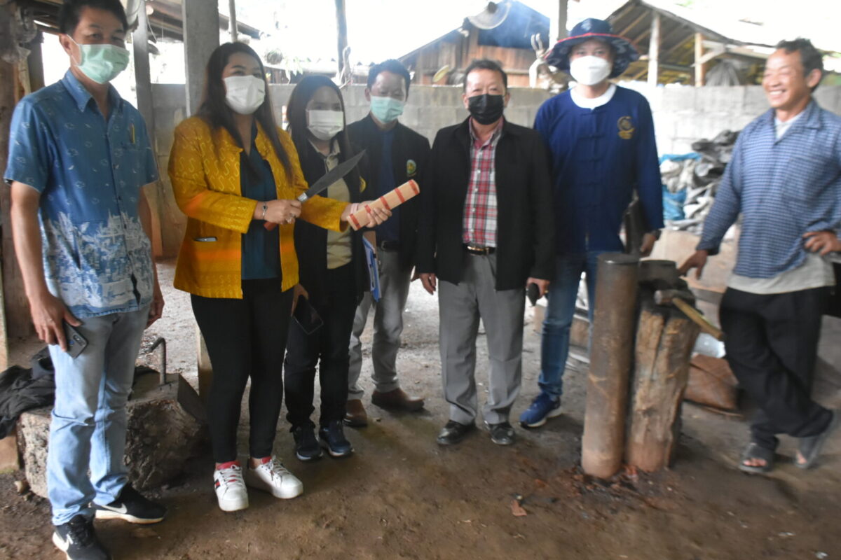 หลังเสร็จสิ้นกิจกรรมการพบปะพูดคุยกับผู้นำและผู้ประกอบการแล้ว ก่อนเดินทางกลับ ทีมงาน Change For Good ได้ไปเยี่ยมชม “กลุ่มตีมีด” ซึ่งเป็นหนึ่งในผลิตภัณฑ์ที่ขึ้นชื่อของชุมชนภูชี้ฟ้า ในชุมชนจะมีชาวบ้านบางส่วนที่ประกอบอาชีพตีมีด โดยใช้เหล็กแหนบ สามารถผลิตมีดหรือดาบตามแบบที่ลูกค้าสั่งได้ มีลูกค้ามาแวะซื้อหาตลอด โดยทีมงานจากกระทรวงมหาดไทย ได้ชี้แนะถึงการสร้างแบรนด์ของชุมชน เพื่อให้เป็นที่รู้จักของคนทั่วไป