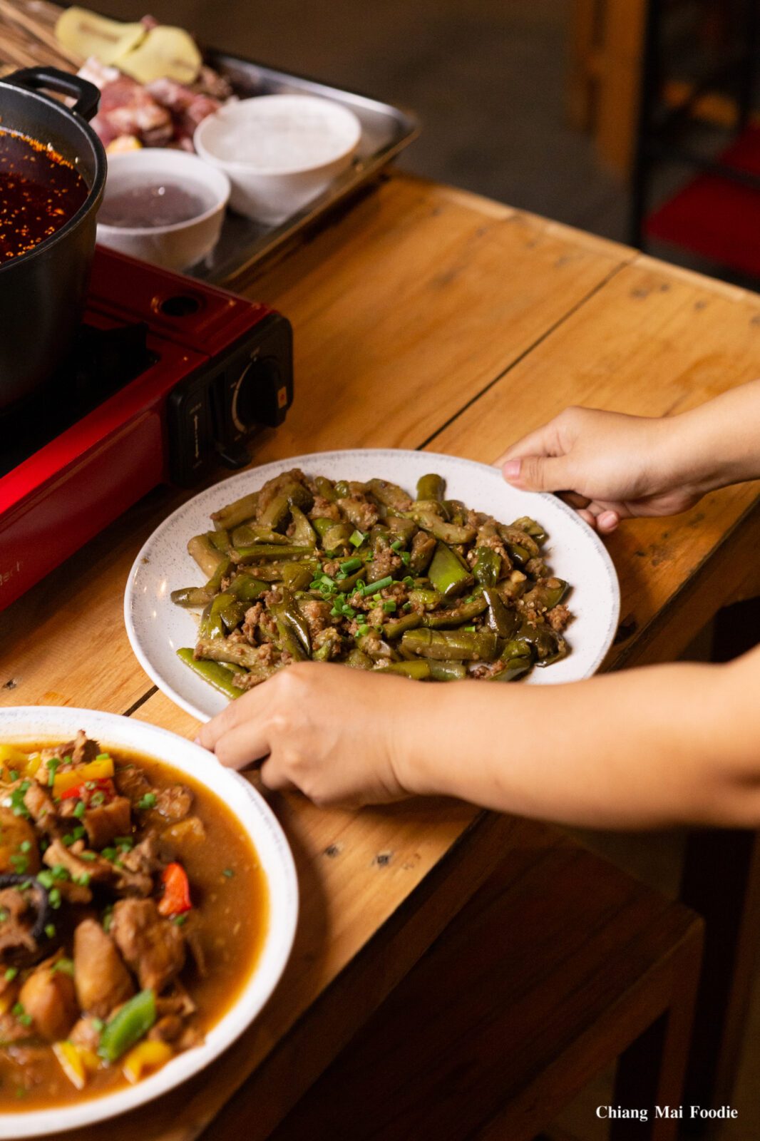 นี่นะ ก็ไม่รู้เป็นอะไร เวลาเจออาหารจีนแบบเป็นจานๆ จะชอบมโนว่าตัวเองเป็นจอมยุทธ์หญิงมานั่งโรงเตี๊ยม จิบชา ตะเกียบคีบของกิน หรือว่าเราจะอินซีรีย์มากไป ช่วงนี้ท่านแม่ทัพหลิงปู้อี้กำลังมาแรงไง^^ ..กลับมาเรื่องอาหารบนโต๊ะกันดีกว่า #เนื้อตุ๋นมันฝรั่ง#ไก่อบซอส(หัวมันเจของจีน) #ไข่ผัดมะเขือเทศ (อันนี้คืออยากกินมานานมากกก) #มะเขือยาวผัดหมูสับ#หมูสามชั้นผัดพริก บอกเลยว่า เซทนี้เหมาะกับการเบรครสเผ็ชชร้อนในหม้อข้างๆ สุด