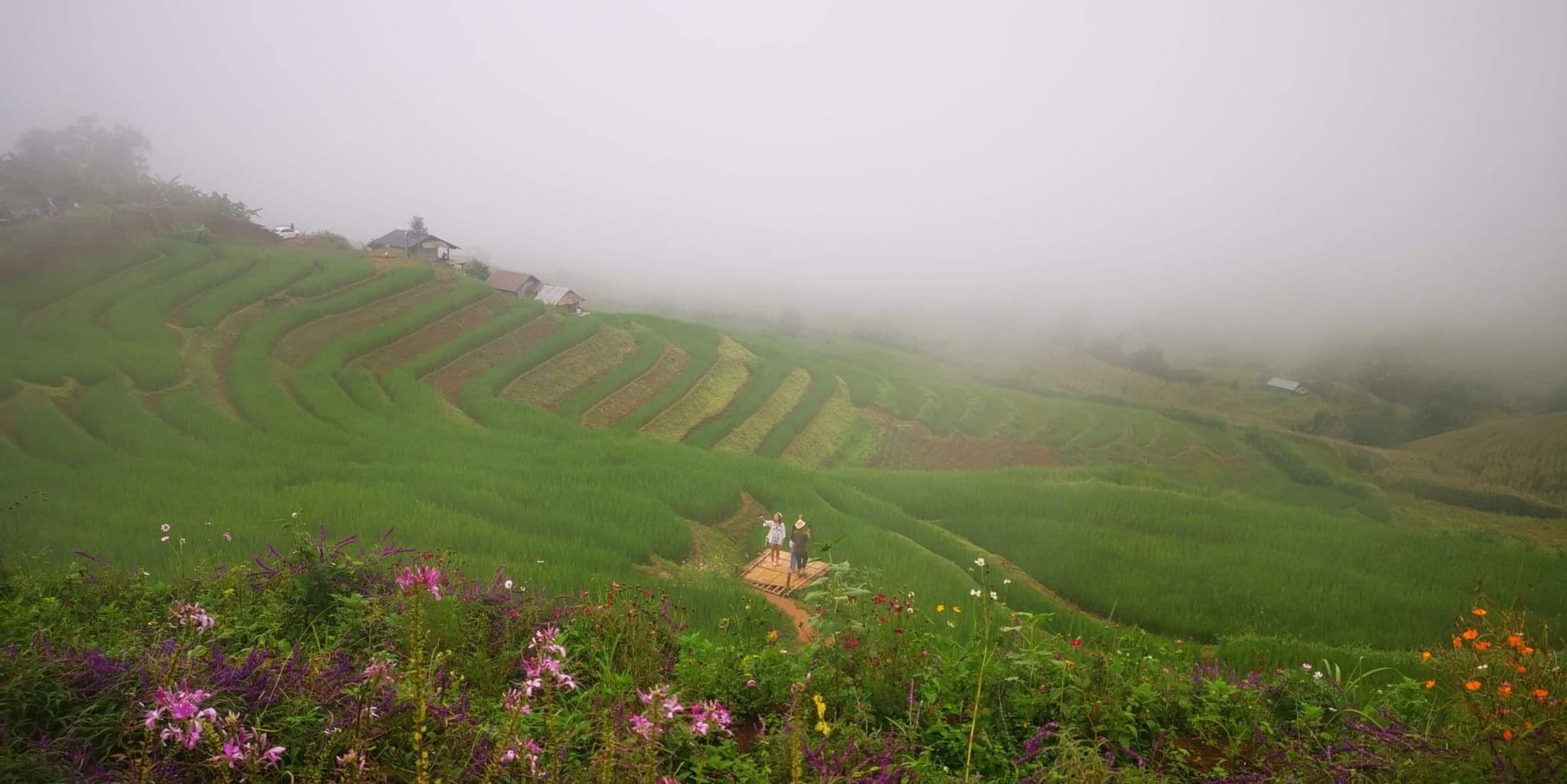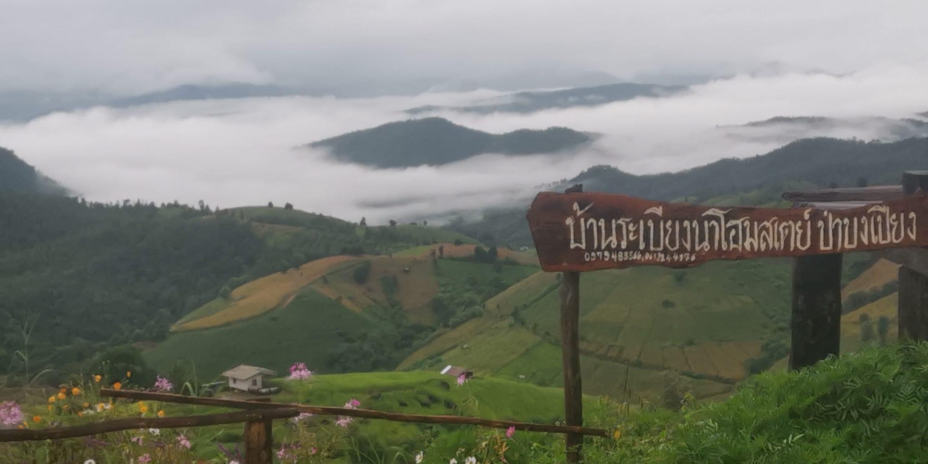 เมื่อเช้าวันที่ 2 ต.ค.2565ลุงหนวด ดอยอินทนนท์ มัคคุเทศน์ท้องถิ่น อ.จอมทอง จ.เชียงใหม่ รายงานว่าได้นำนักท่องเที่ยวชาวไทยจำนวนหนึ่งขึ้นไปท่องเที่ยวและพักแรมที่นาขั้นบันไดป่าบงเปียง อ.แม่แจ่ม ชึ่งเช้าวันนี้บรรยากาศ ณ ที่แห่งนี้ไม่มีฝนตกมีแต่สายหมอกตกปกคลุมไปทั่ว อากาศเย็นสบายเป็นที่ชื่นชอบของนักท่องเที่ยวเป็นอย่างมาก ได้พากันมานั่งบนระเบียงที่พักชมสายหมอกและสูดอากาศที่แสนจะบริสุทธิ์ท่ามกลางธรรมชาติที่สวยงาม