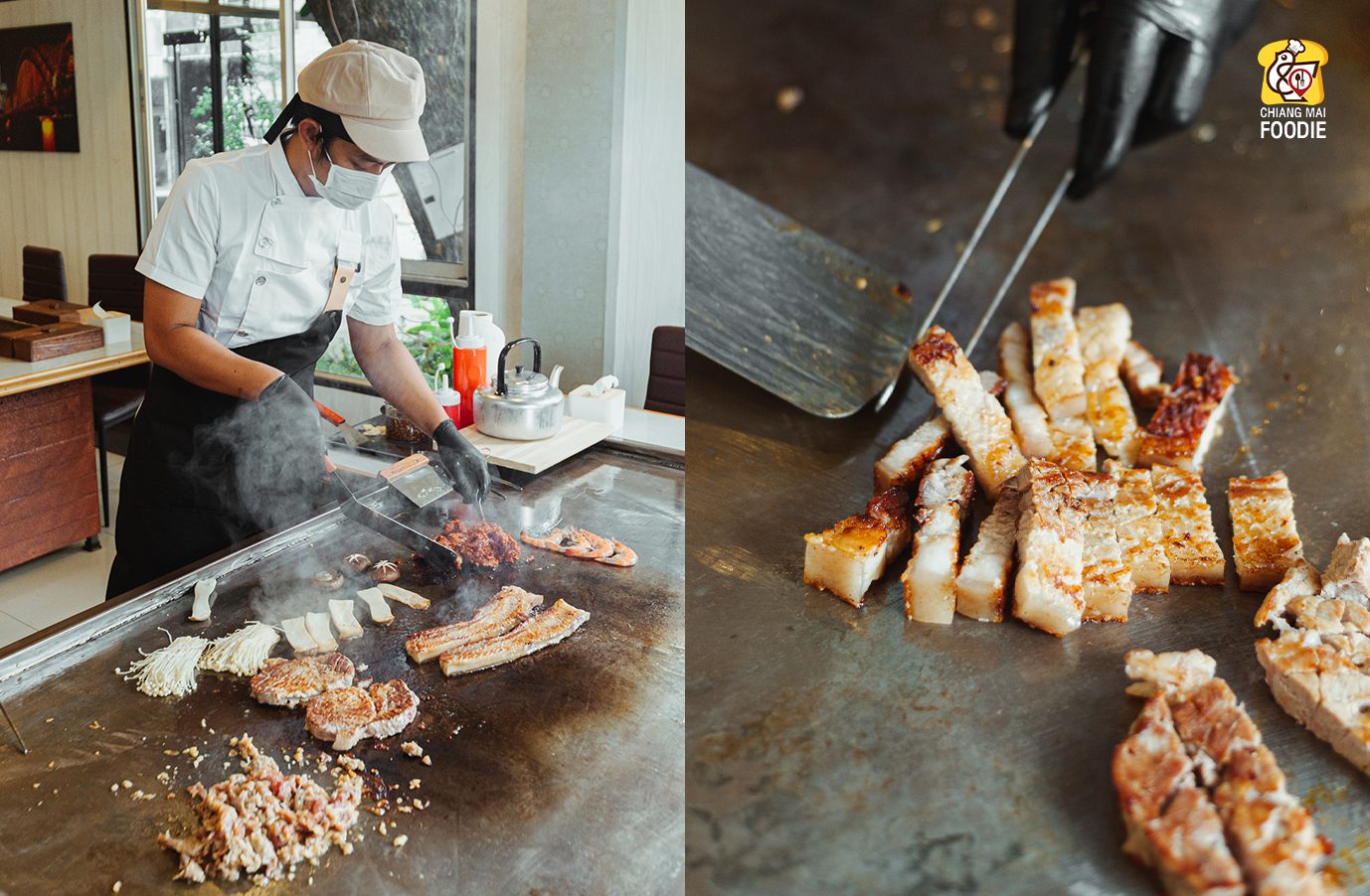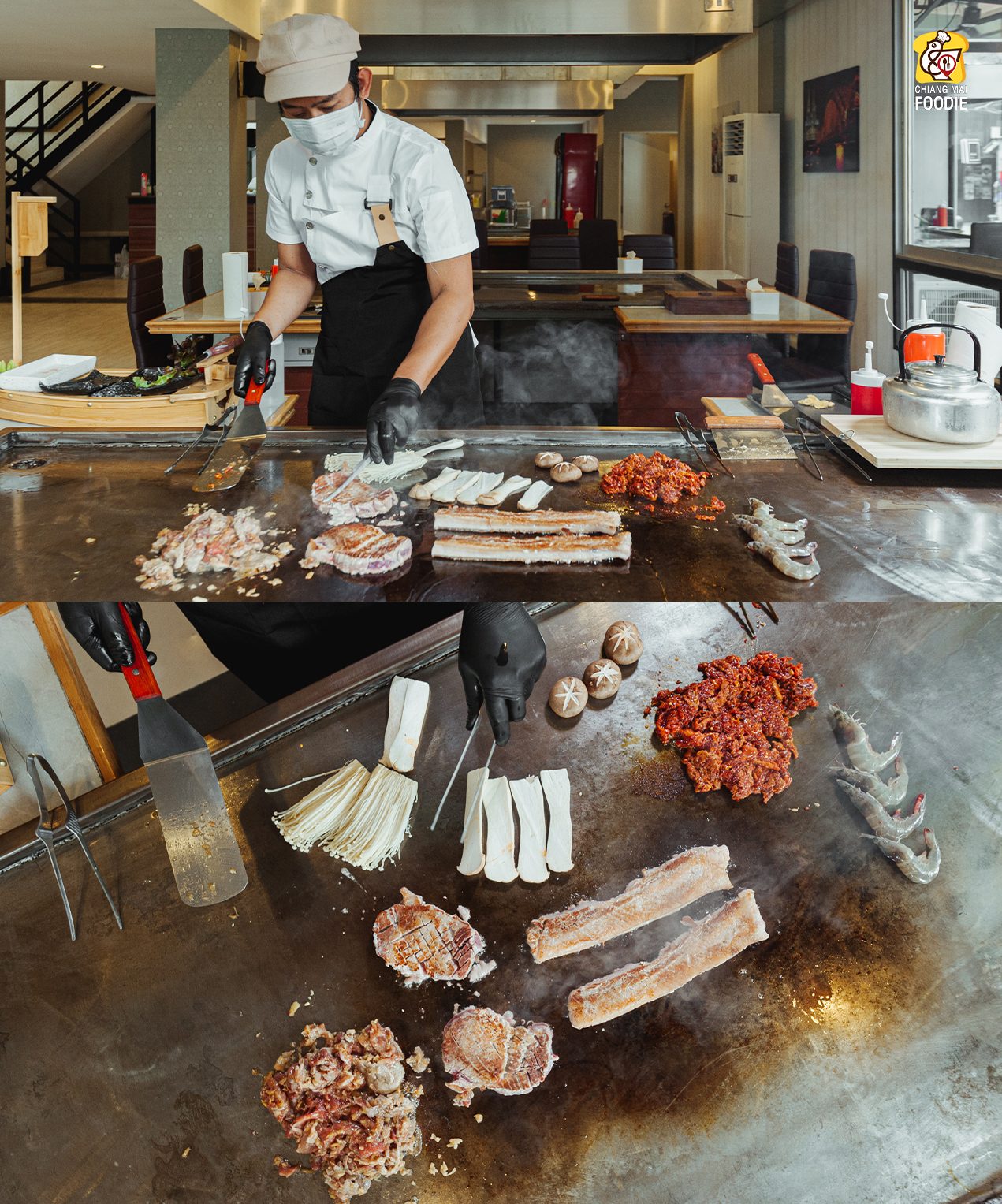 บอกเลอ ว่าได้นั่งกินกันแบบสวยๆ ไม่ต้องเมื่อยปิ้งย่างเอง เพราะว่า มีเชฟกริลให้ทุกโต๊ะ ตัดให้ หั่นให้ พร้อมกิน น้ำมันที่เค้าใช้กริลใช้ผัดนี่คือน้ำมันจากต้นหอมญี่ปุ่นเพิ่มความหอมและอรรถรสในการทำอาหาร ไม่ต้องห่วงความมันเกินเบอร์