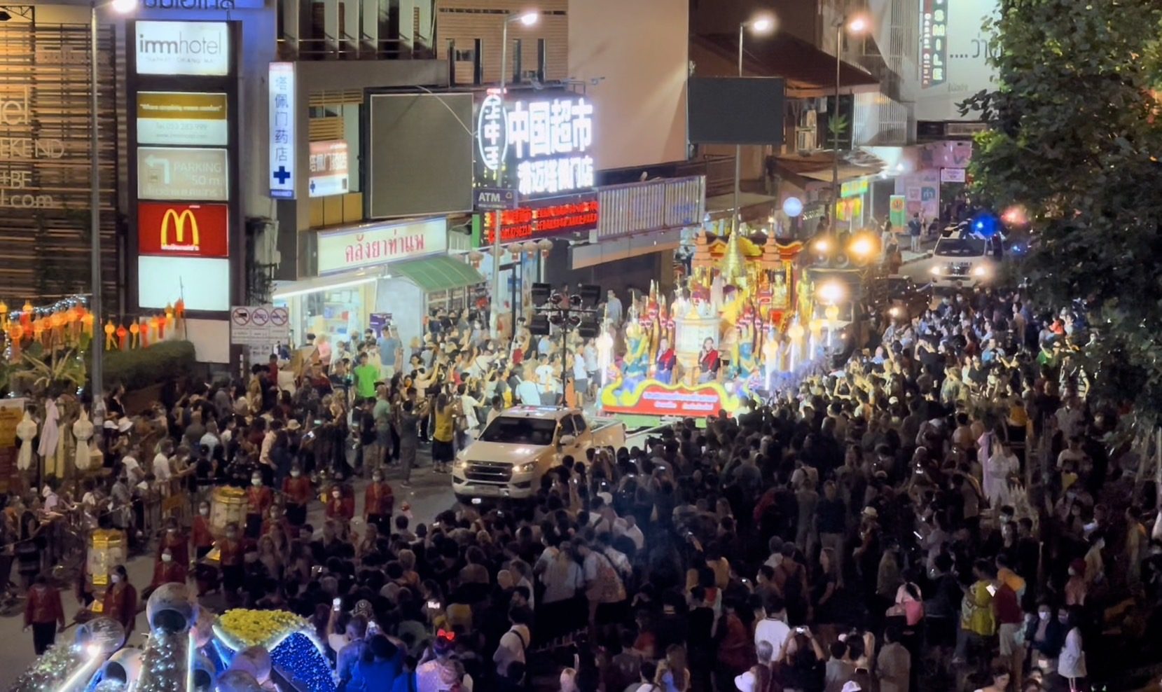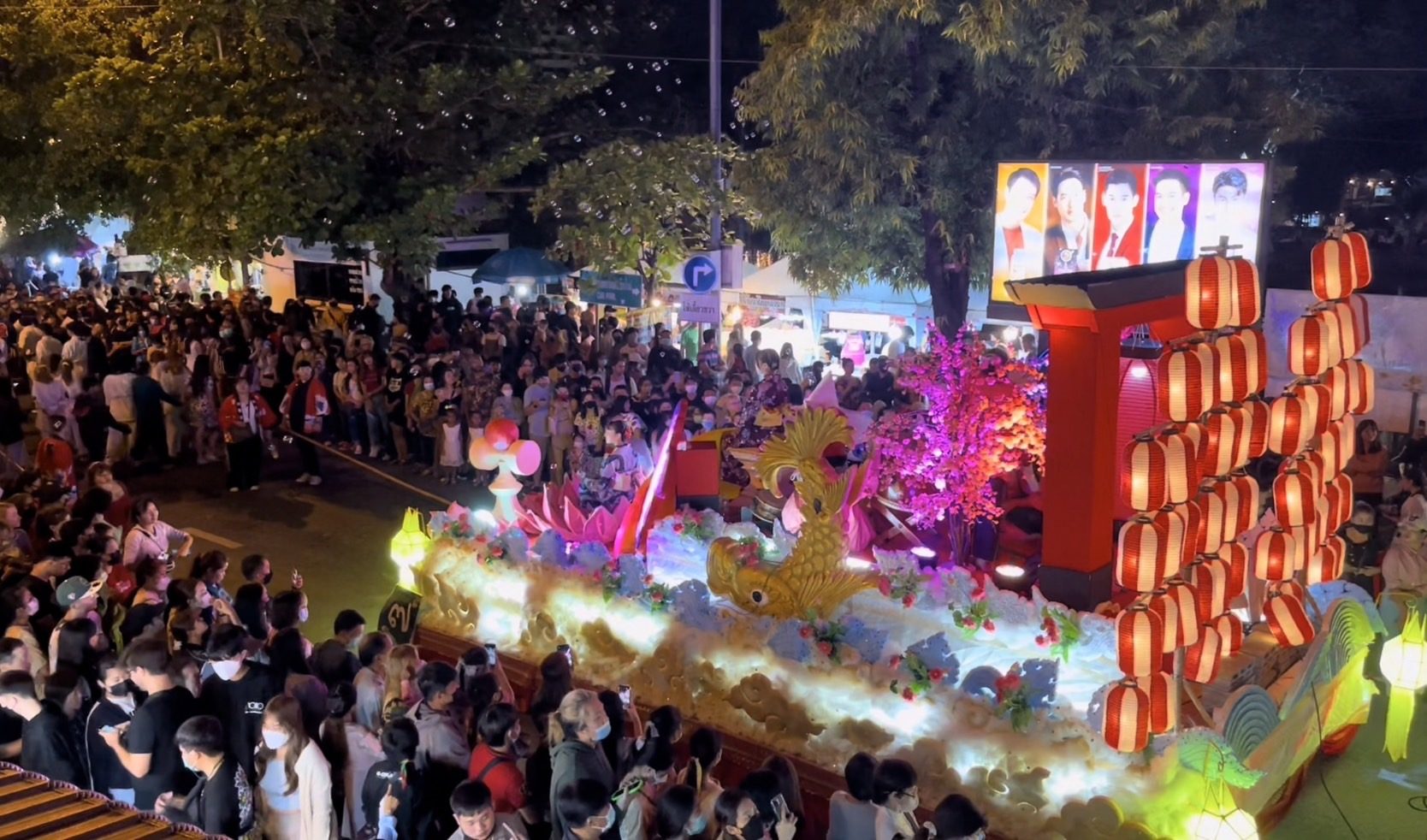 ค่ำคืนวันนี้ (9 พ.ย.65) รายงานข่าวแจ้งว่า บรรยากาศคืนสุดท้ายของงานประเพณียี่เป็งเชียงใหม่ ประชาชนและนักท่องเที่ยวพากันออกมาชมการประกวดขบวนแห่กระทงใหญ่ ชิงถ้วยรางวัลพระราชทานพระบาทสมเด็จพระเจ้าอยู่หัว ซึ่งถือเป็นไฮไลท์สำคัญของประเพณียี่เป็งเชียงใหม่ ทำให้บริเวณข่วงประตูท่าแพซึ่งเป็นจุดเริ่มต้นของขบวนแห่เนืองแน่นไปด้วยนักท่องเที่ยวนับหมื่นคน ถือเป็นครั้งแรกหลังโควิด 19 ที่งานเทศกาลของจังหวัดเชียงใหม่ที่มีผู้คนเนื่องแน่นมากขนาดนี้
