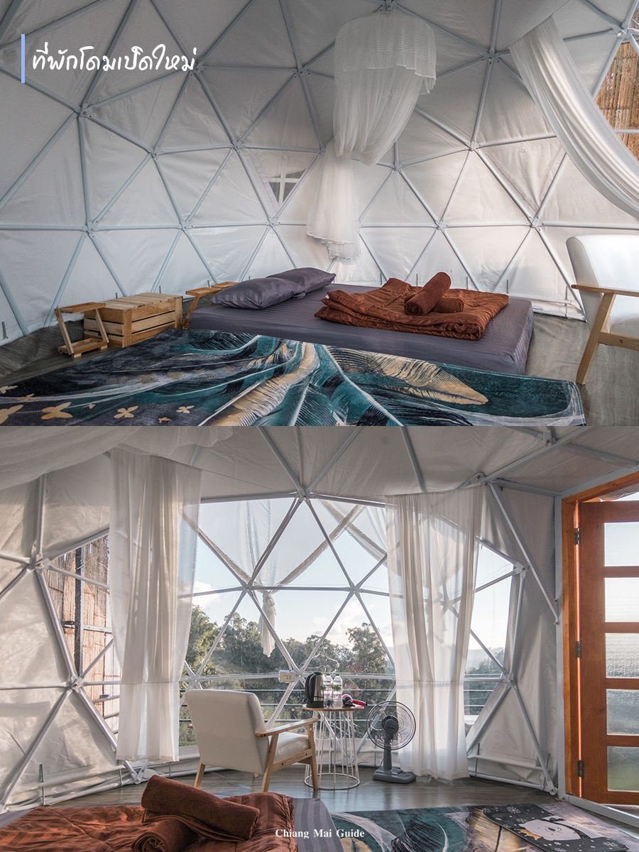 หน้าหนาวทั้งทีจะพลาดที่นี่ไปไม่ได้ ม่อนแจ่ม วันนี้แอดพามาที่ บริช สกายดอย โฮมสเตย์ ทำไมแอดเลือกมาที่นี่อะหรอ เพราะแอดชอบในความออกแบบที่พักที่อยู่บนสะพานลอยที่ทอดยาวของที่นี่ ด้วยความที่ตั้งอยู่พื้นที่โล่งทำให้รับลมหนาวได้แบบเต็มๆ มองออกไปเห็นวิวที่ถูกล้อมรอบด้วยภูเขาคือสวยมาก ตอนกลางคืนแอดชอบมากเพราะที่นี่เค้าติดไฟตลอดทั้งทาง ถ่ายรูปตอนกลางคืนจะได้อีกฟิลเลย ส่วนห้องพักที่นี่จะมีทั้งบ้านและโดม บ้านจะมี 2 โซน โซนทางเข้ากับโซนชมวิวติดกับโดม ส่วนตัวแอดชอบบ้านกล่องโมเดิร์นของที่นี่มากออกแบบเก๋ดี ส่วนโดมคือแอดจะบอกว่าเป็นโซนที่เค้าสร้างใหม่ คือเพิ่งสร้างเสร็จแลย สวยมาก ในโดมพื้นที่กว้าง สิ่งอำนวยความสะดวกเพียบ ตอนกลางคืนเค้าติดไฟที่โดมด้วยนะ สวยมาก ตื่นเช้ามาเห็นวิวและหมอกข้างนอกโดมเลย ฟินสุดๆ