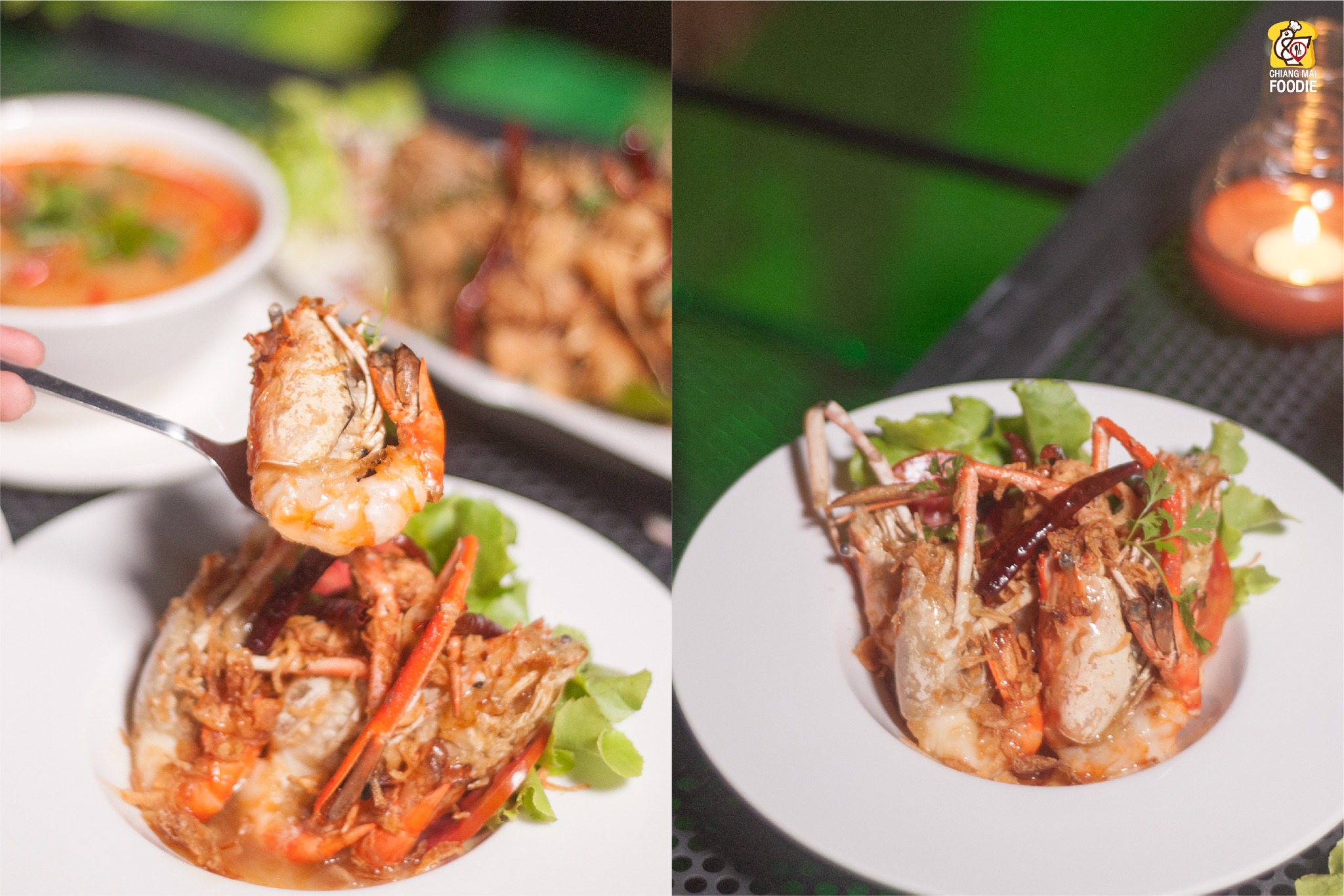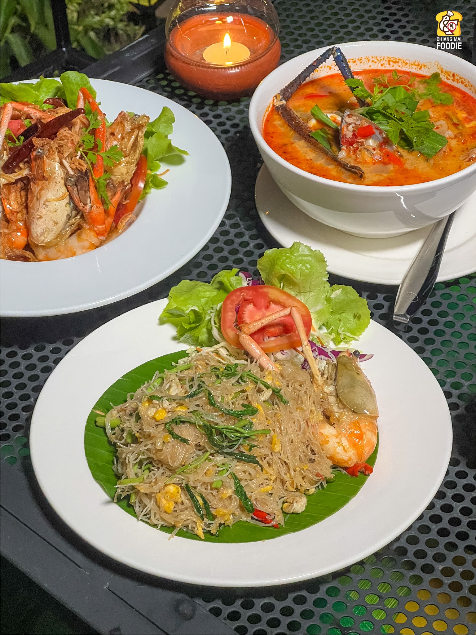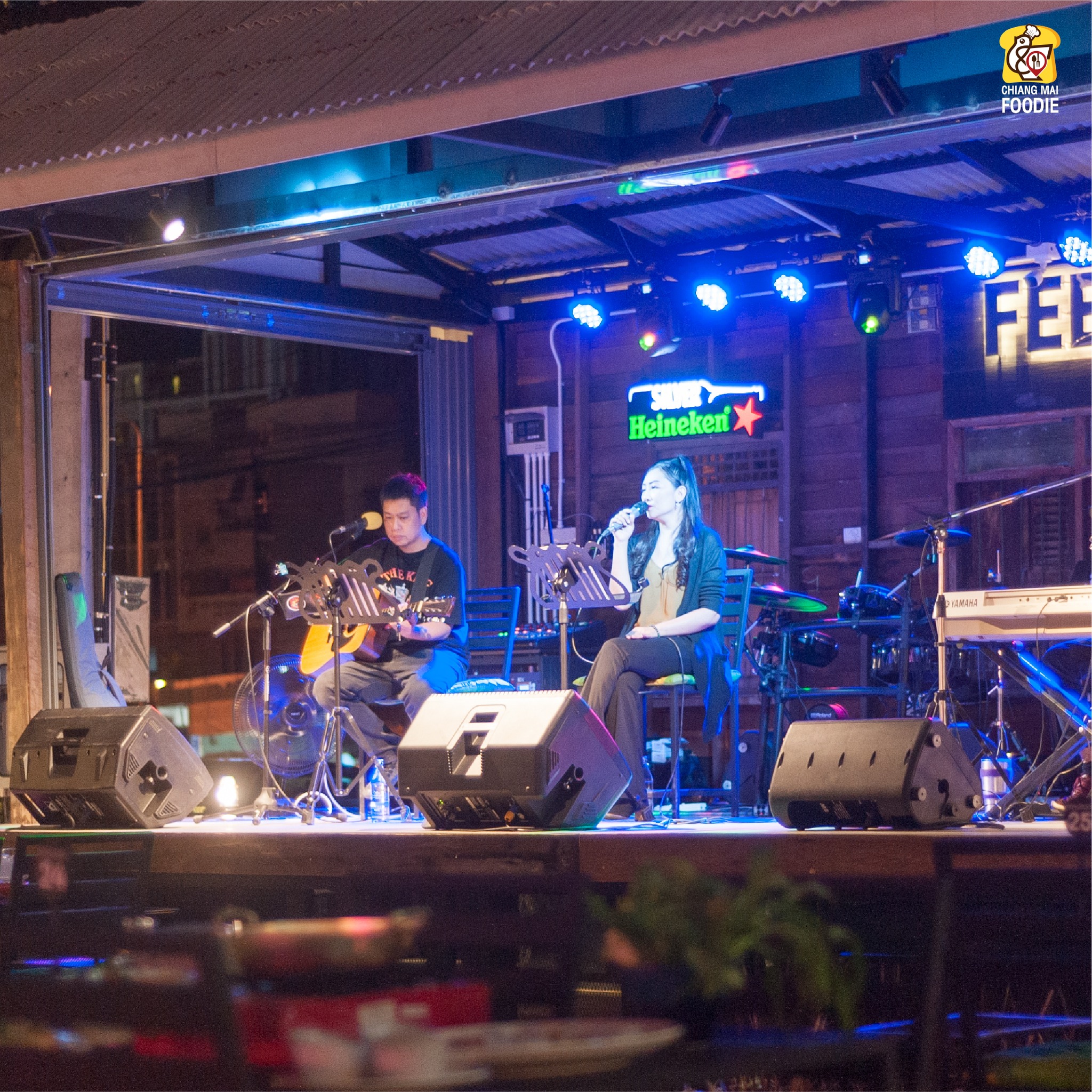 เป็นร้านแบบโอเพ่นแอร์บรรยากาศโปร่งๆ ไม่แออัด เหมาะกับฤดูกาลนี้ที่สุด นั่งรับลมเย็นชิลๆ มีดนตรีสด วงแรกที่เจอเป็นเพลงไทยยุค 80-90 แอดมินเจ่เจ้ร้องได้ทู๊กกกเพลง จอยมากเวอร์ (ไม่ใช่อายุเยอะ ฟังตามพ่อ แอ่นแล๊ะ!!) วงที่สอง เป็นเพลงสากล นั่งฟังเพลินๆ กิ๋นข้าวลำแหละ